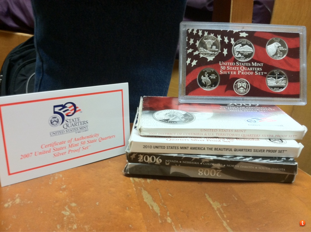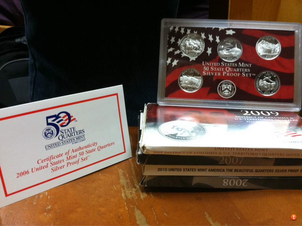Prices have been lowered on some items to better reflect the market. Pictures are enclosed below. I am also looking to buy some silver, and as mentioned below I am willing to trade for it. Let me know what you have. Whether you are the avid collector, novice and want some nice type coins to get an idea of what to collect or a dealer that wants to add to his own personal collection, I am certain I have something for you. Here are the terms of this listing: Shipping is FREE. I DO accept trades. Especially in the form of silver bullion and/or junk silver. Hit me an offer and I will consider it. Feel free to make reasonable offers. I am a fair guy. I want you to be happy, but I can't break the bank in doing so. Half Cent: 1825 Half Cent ANACS certified VF-20 Solid, problem-free coin for the grade. Only 63,000 minted! Beautiful chocolate surfaces. Price: $95 Lincoln Cent: 1924-S Lincoln Cent AU-50 Beautiful lustrous example with STRONG strike. The wheat stalks are gorgeous, and there appears to be a planchet error on the reverse. You have my guarantee it is problem free, and hard to find in this condition with such an exemplary strike. A definite pick-up for the Lincoln enthusiast, or one who collects strongly struck S-mint Lincolns. Price: $40 Barber Quarter 1913-D Barber Quarter G-6 Eye-appealing piece that is well circulated. Only 3,046,000 minted! Price: $7 Barber Half Dollar: 1913-S Barber Half Dollar G-4 Well-circulated problem free coin with nice appeal. Ya gotta love old silver. Price: $15 Proof sets: 2006-S Silver Quarter Proof Set: Beautiful deeply-set cameo'd coins with brilliant reflective surfaces. This is for the five-piece quarters only. Has original mint box and COA. Price: $23 2007-S Silver Quarter Proof Set: Beautiful deeply-set cameo'd coins with brilliant reflective surfaces. This is for the five-piece quarters only. Has original mint box and COA. Box has light shelf wear. Price: $27 2008-S Silver Quarter Proof Set: Beautiful deeply-set cameo'd coins with brilliant reflective surfaces. This is for the five-piece quarters only. Has original mint box and COA. Box shows shelf wear, but the coins inside along with the holder are beautiful. Price: $25 2009-S Silver Quarter Proof Set: Beautiful deeply-set cameo'd coins with brilliant reflective surfaces. This is for the six-piece quarters only. Has original mint box and COA. Price: $29 2010-S Silver Quarter Proof Set: Beautiful deeply-set cameo'd coins with brilliant reflective surfaces. This is for the five-piece quarters only. Has original mint box and COA. Price: $33 If you buy all five sets, they are yours for $125 shipped! Thanks for looking!