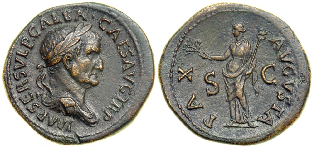 I've recently added another bronze to my collection. I have been looking for a Galba as for some time, having missed an opportunity to acquire a good one about a year ago. Since there haven't been any candidates recently, I decided to accept a dupondius as a representative for a "small bronze" in place of an as: GALBA 68 - 69 A.D. AE Dupondius (13.55 g.) Rome 68 AD IMP SER SVLP GALBA - CAESAR AVG TR P Laureate and draped bust r. Rev. PAX AVGVSTA Pax standing left, holding olive branch and caduceus; S - C in field RIC 320 The portrait style on this coin seems pretty good and compares favorably with the few other small bronzes of Galba that I've I've run across in the last year or so. The only thing I'm not sure of is whether Galba is adorned with a laurel wreath (which would make it RIC 320) or an oak wreath (which would make it RIC 321). I think it's a laurel wreath, correct? The seller had this coin incorrectly attributed as RIC 247, which is completely wrong.