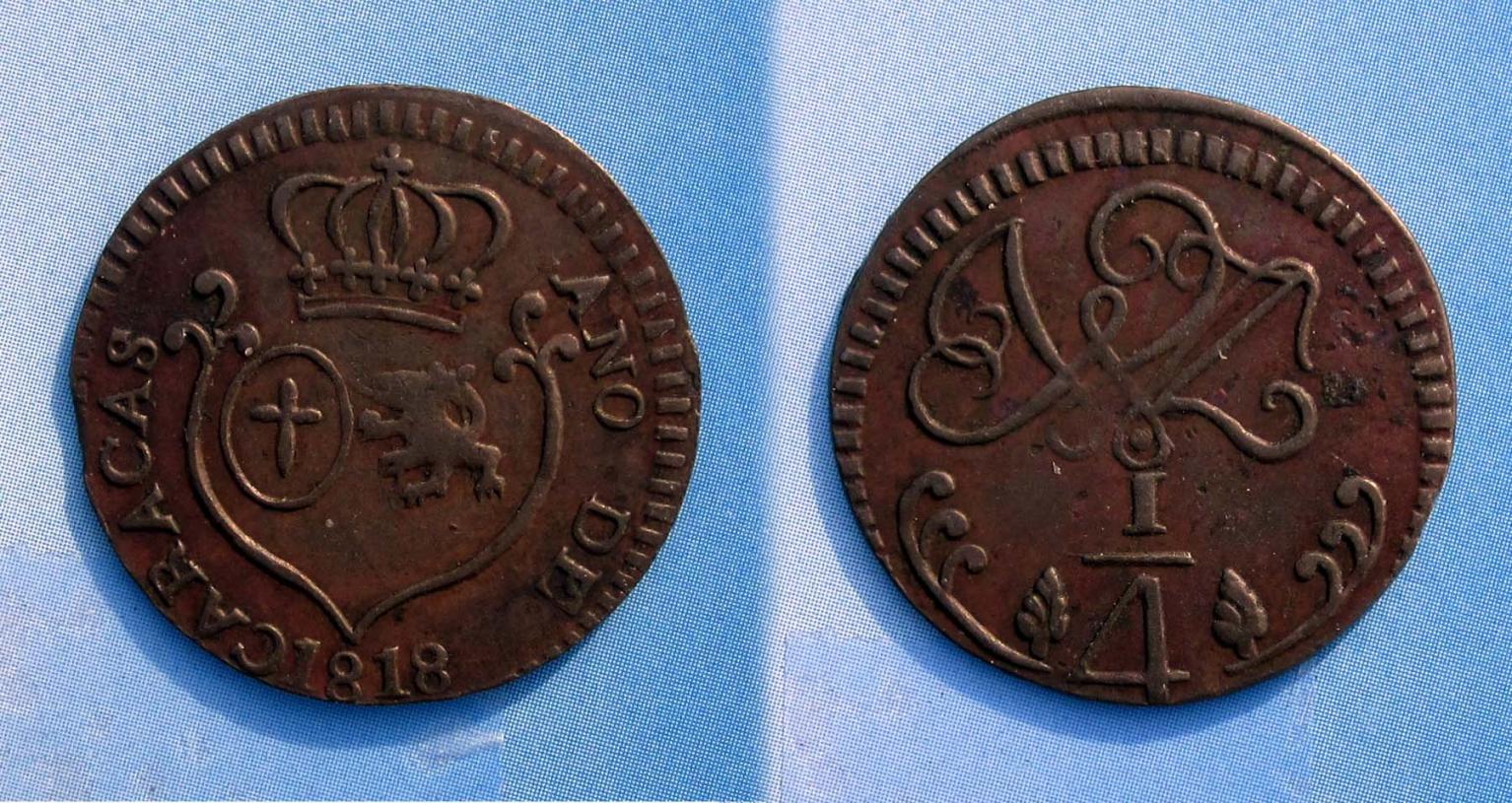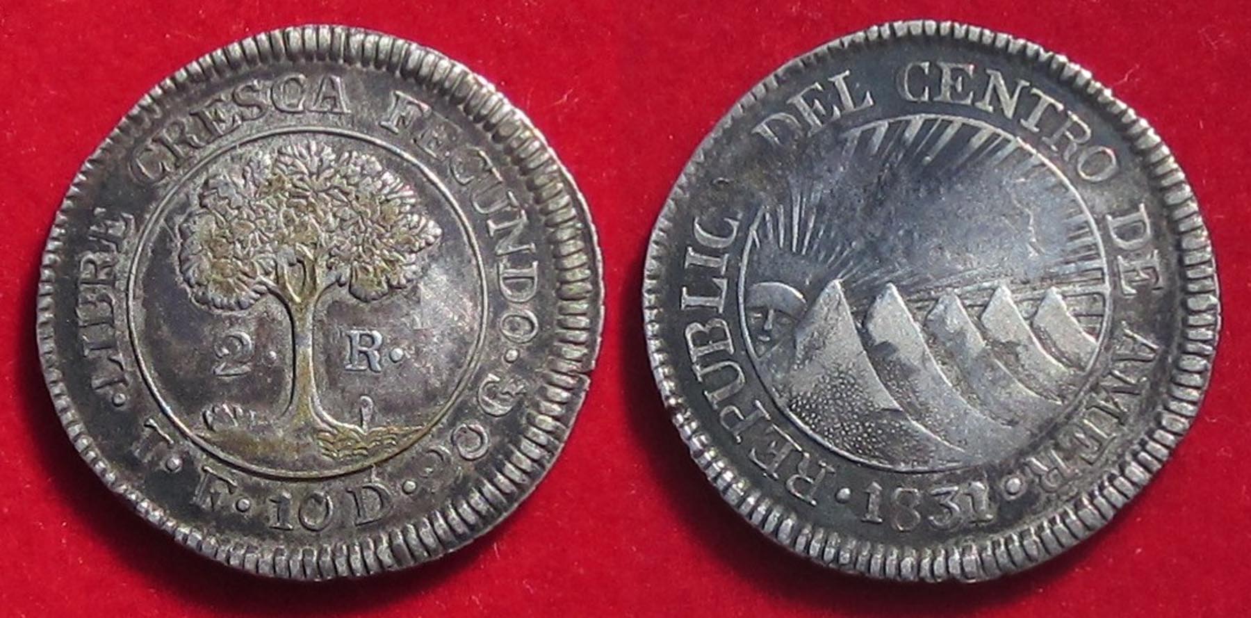 Next, I located this 1831TF Central American Republic 2 Real. Weiss Collectable Sales had this CAR piece and also an 1818 1/4 Real from Caracas Venezuela.