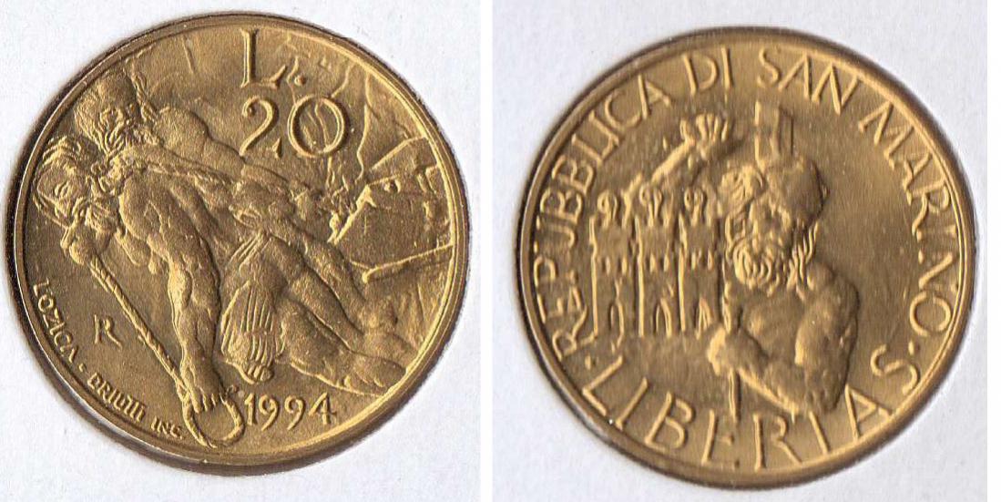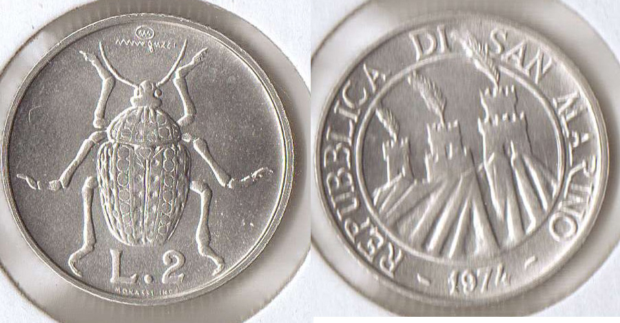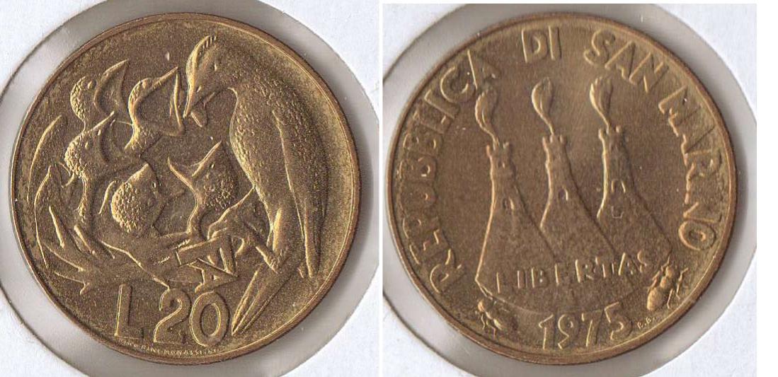 Along with the Vatican, San Marino has some of the most consistently beautiful coins I've seen, most in a Renaissance style. Here are the ones I have so far. 1935 10 centesimi 1974 2 lire 1975 20 lire