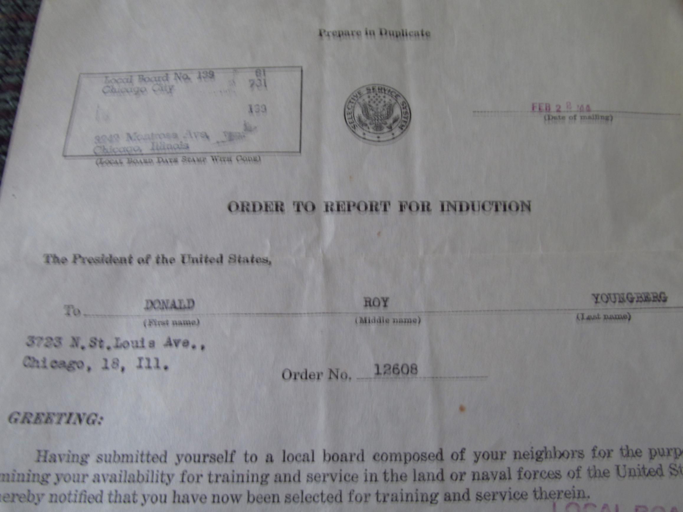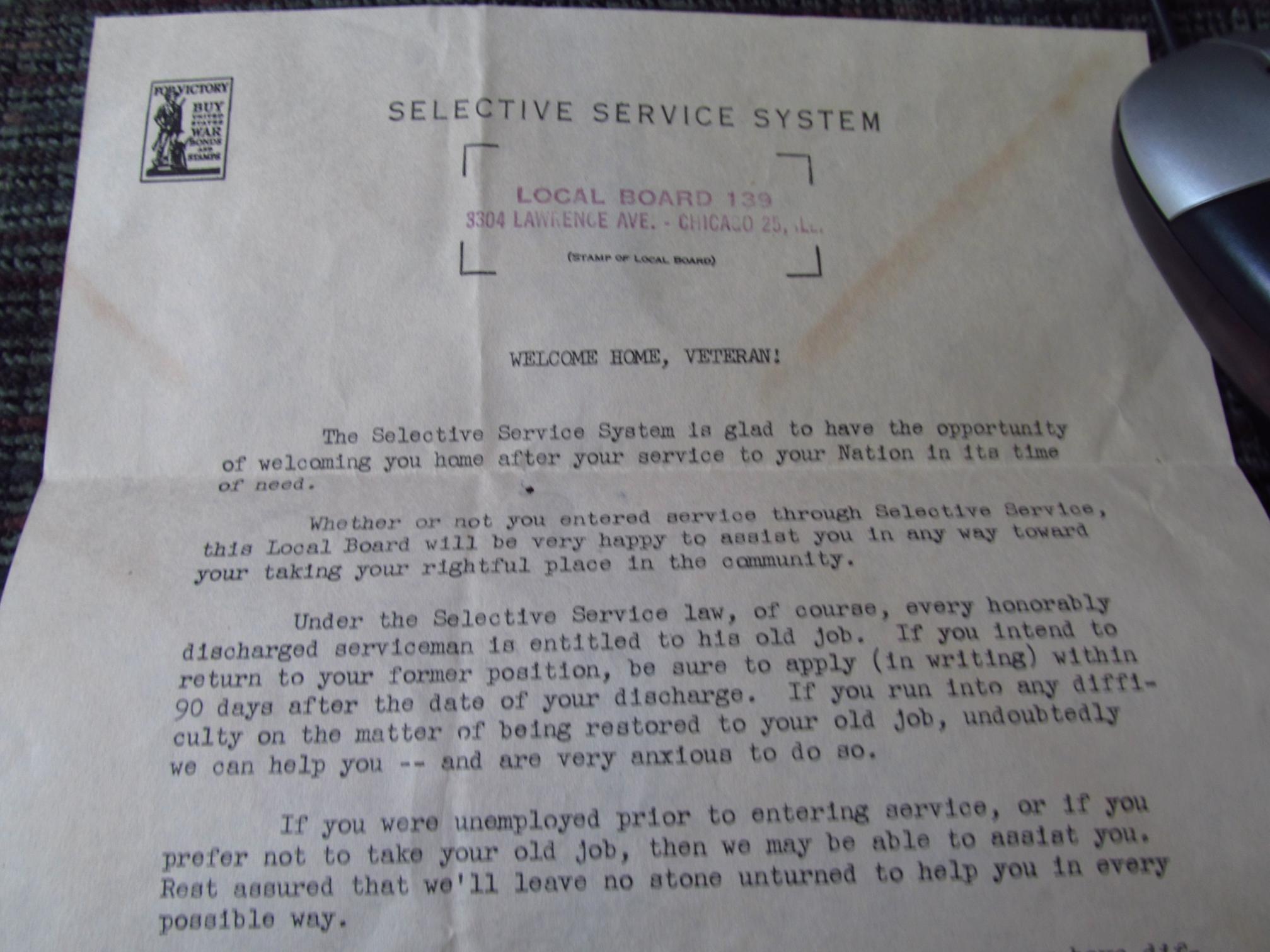 it is immense. he and his wife saved every single thing he ever received in regards to the war. from beginning to end. here are the first letter he received from selective services and the last. i have EVERYTHING in between. it is a lot of stuff.