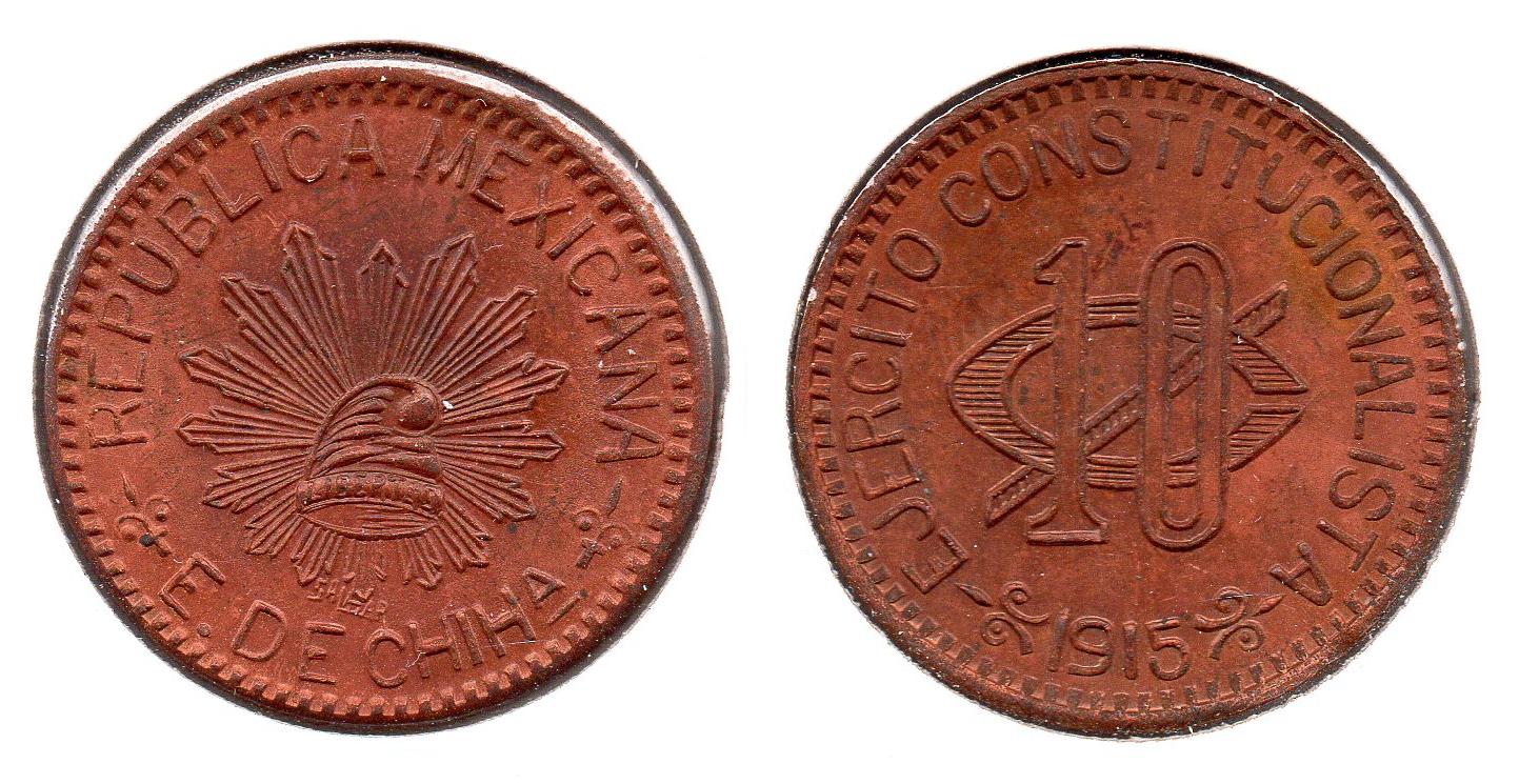 Does anyone here collect Chihuahua Constitutionalist or Parral issues? If so, I'd like to compare notes and images and the like. Let me know! Thx, Joe BTW. Here's some of my nicer coins: 1914 - 5 Centavos - Brass 1915 - 5 Centavos - Bronze or Copper 1915 - 10 Centavos - Bronze or Copper