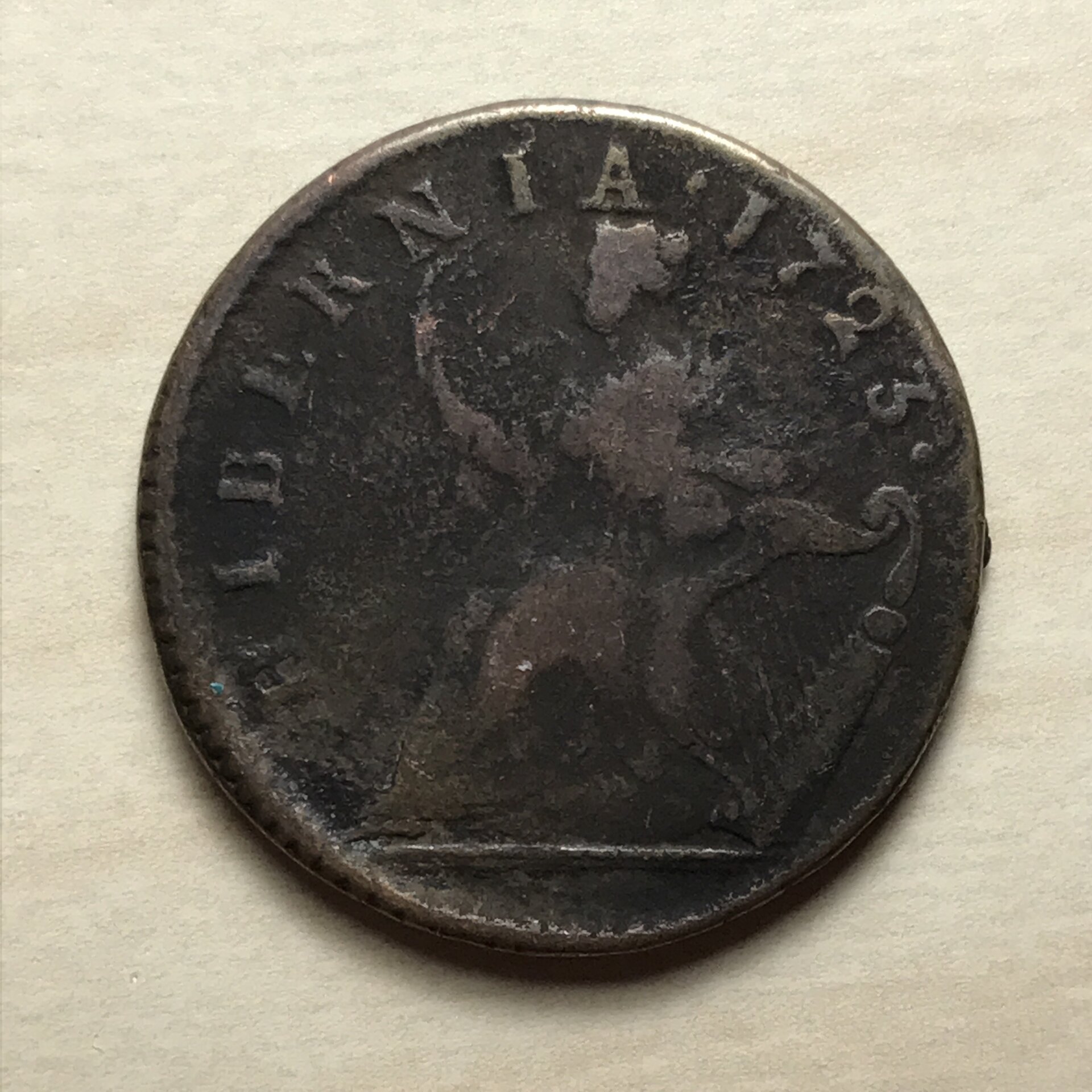 These British "South Sea" issues of 1723 are sort of colonial. Great Britain: silver South Sea Company sixpence of George I, 1723; double-struck mint error (second strike 25% off-center) (PCGS F12) Great Britain: silver "South Sea Company" shilling of George I, 1723 (PCGS MS63+; formerly NGC MS64)