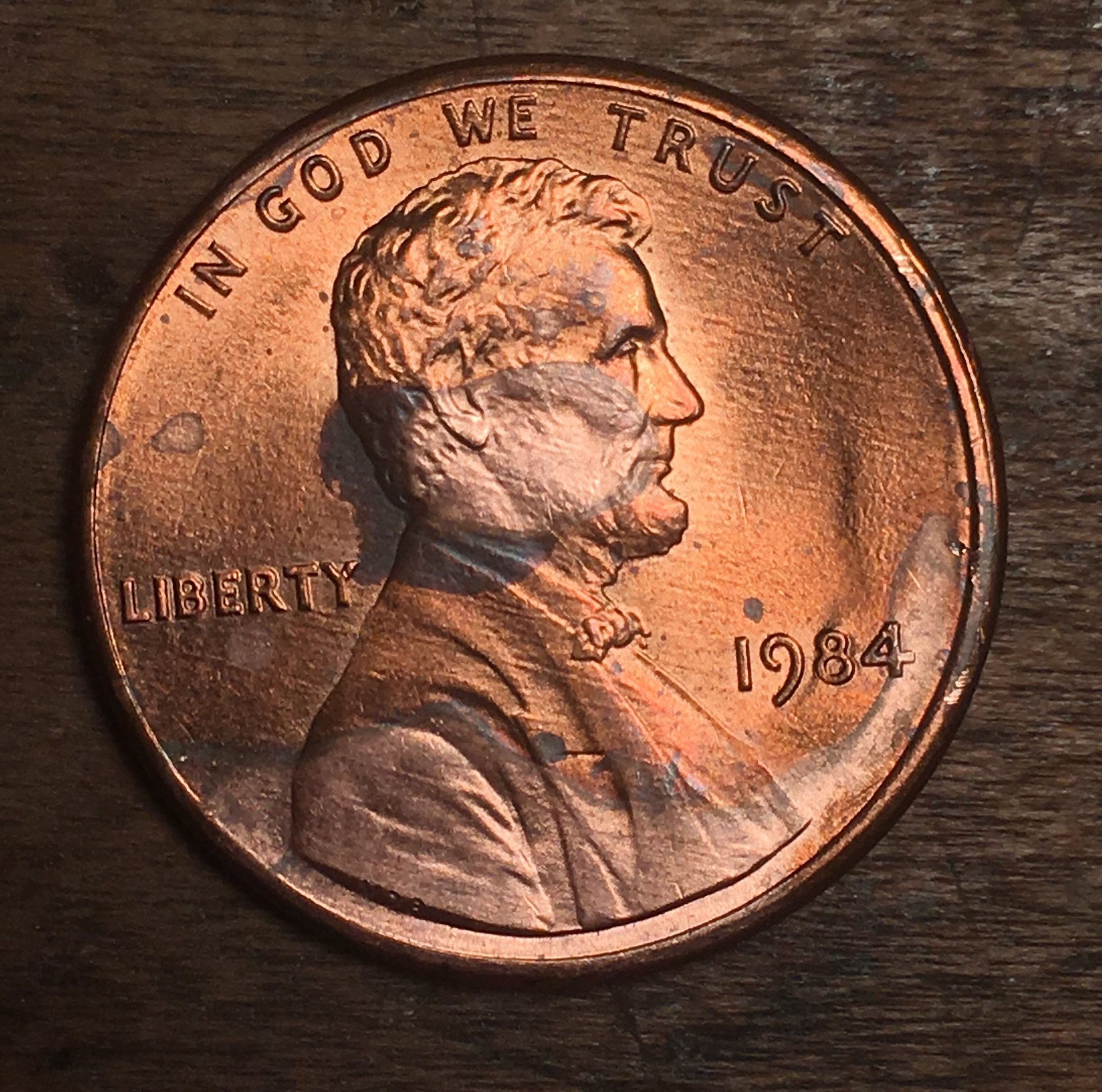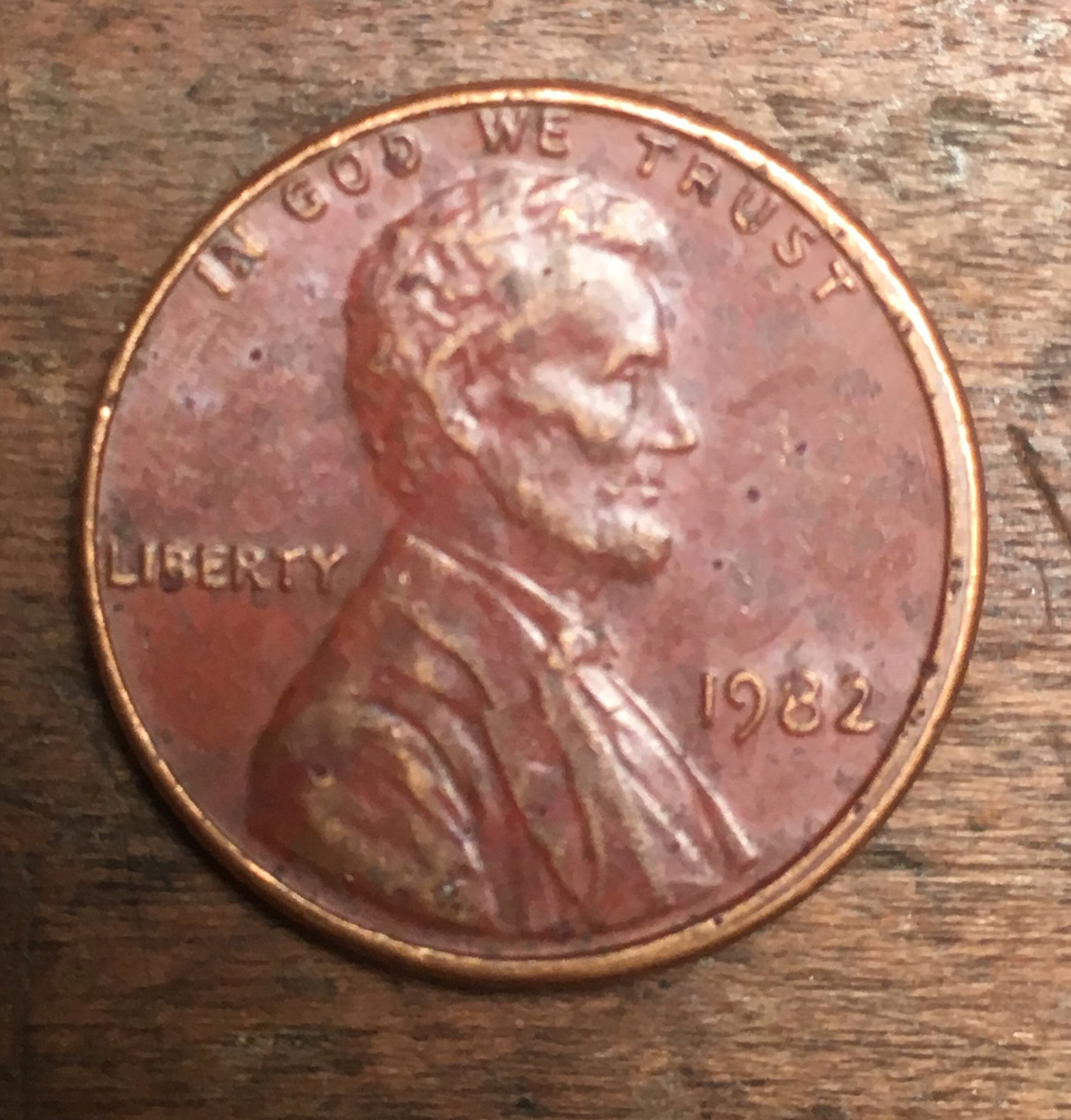 I have included photos for 3 different year cents. 1) Red 1976 cent 2) Red 1982 cent, and 3) 1984 cent with a halfway coating, I assume. Why are the two cents red? What is the film not entirely coating the 1984 cent? Also, on the 1984 cent the “8” on the date and some of the words in “Liberty” seem to indicate doubling. As always, everyone’s knowledge and help is appreciated! More to come!