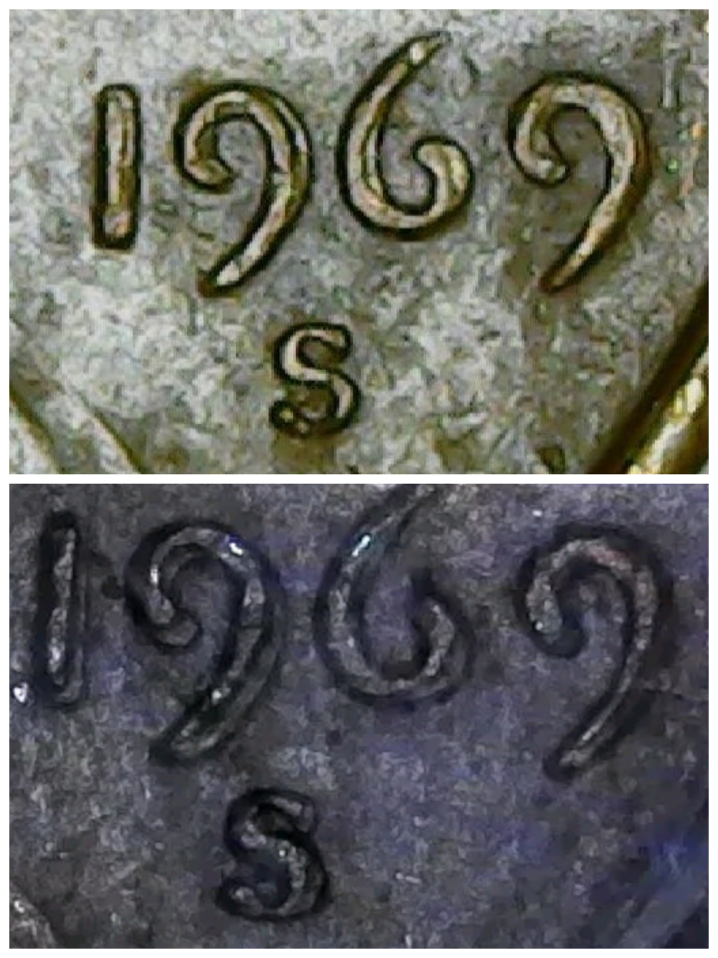 Top of the picture is my 1969 penny and on the bottom the grey picture is one from ebay stating its a pcgs certified 1969s DD. Now my question is can mine the one on top be a DD