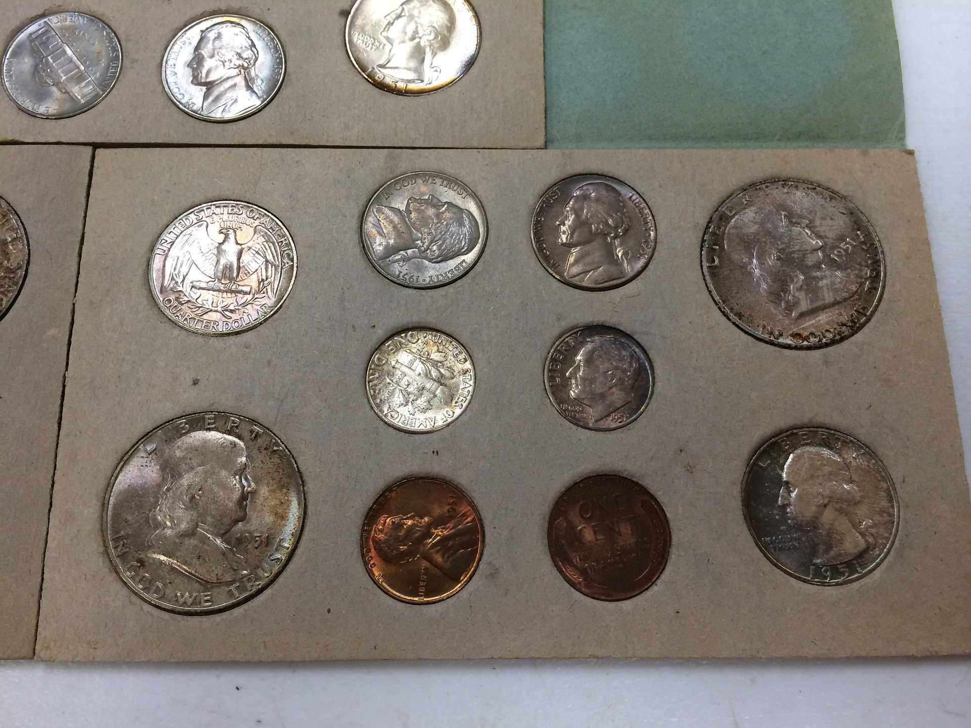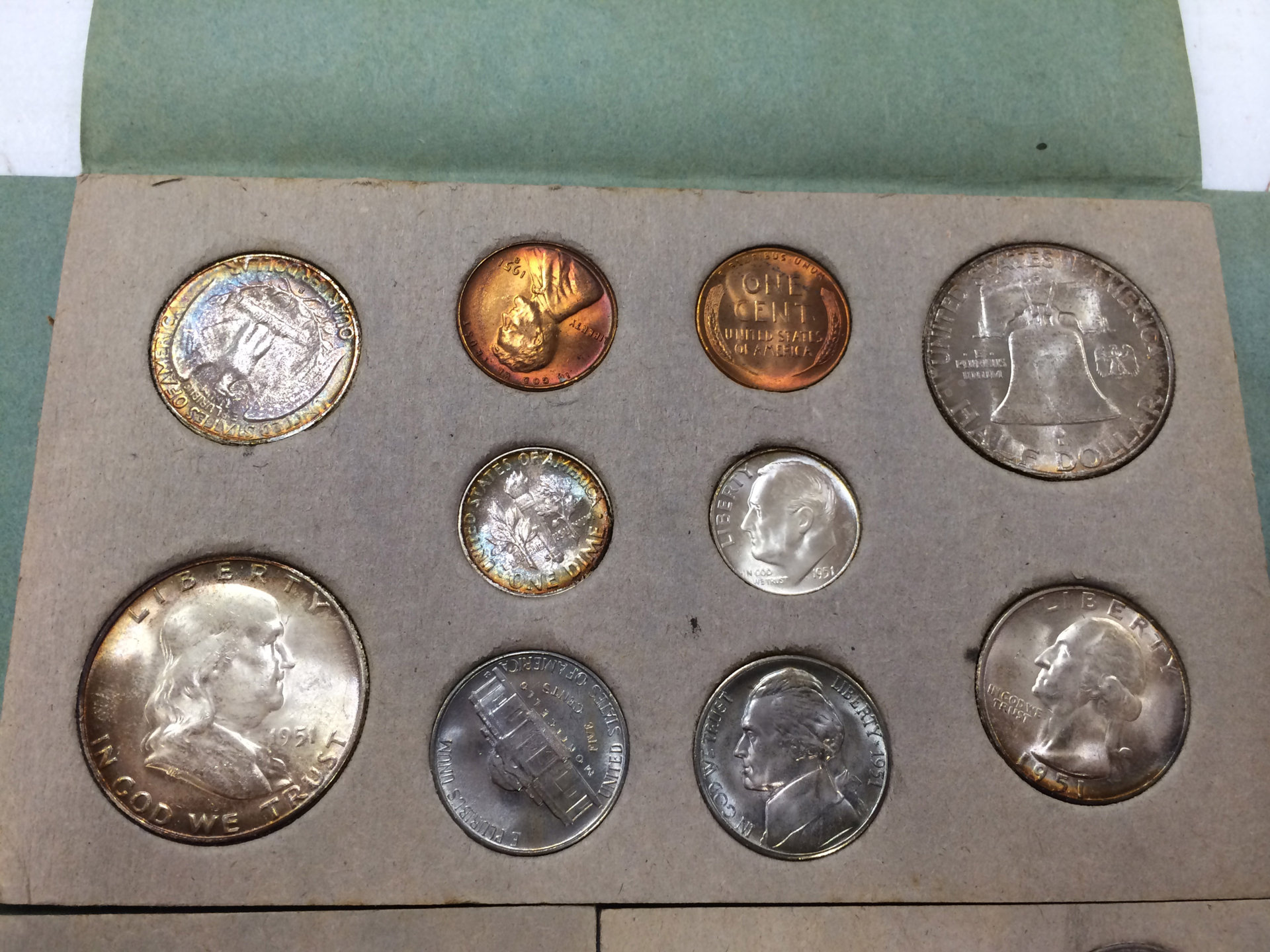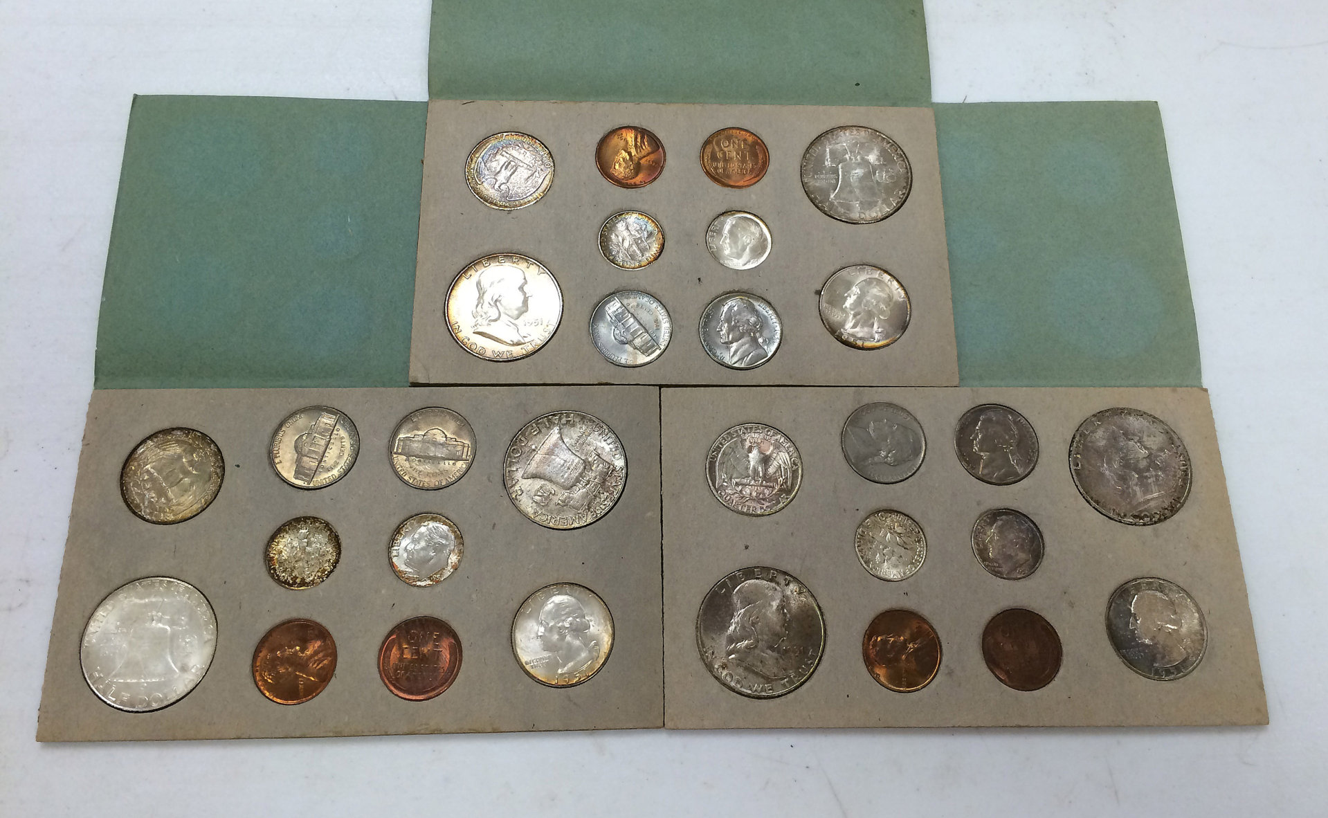 I have a group of early US mint sets. These are the neat ones in the brown envelopes. Price does not include shipping. 1951 Asking $900 1952 Asking $475 1955 Asking $200 1956 Asking $225 Here are pics of the 1951. Pics of the other sets upon request.