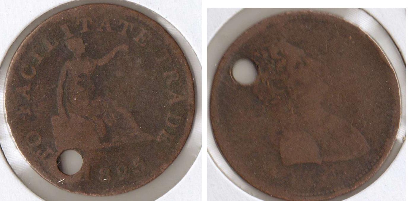 The owner of the coin shop where I got this thought it was a Conder token. Unfortunately one side is mostly worn away and it has a hole, but the other says "To Facilitate Trade" and 1825. Does anyone recognize this?