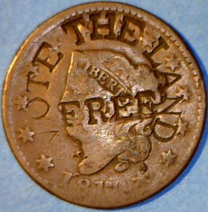 I am not a fan of most counterstamps, but that is a keeper. I have one too. It was long thought that this part of Marin Van Burn's 1848 third party presidential campaign. Dave Bowers found that it was connected with a land ownership redistribution movement.