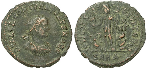 I picked this coin up at a show a week ago and just want to get some verification as to type. The seller said it was a Constantius II but then he also told me he reigned from AD337-AD360 but I've seen mixed information indicating he may have died in battle much earlier (AD340). Anyway, any thoughts/help would be appreciated. The quality of the pictures if not very good (this one just doesn't show out like a modern silver commemorative!). :smile I've put it in an air-tite for preservation. Ken