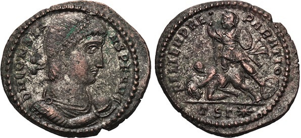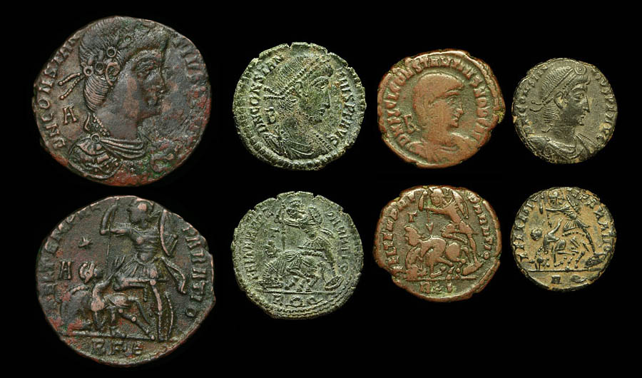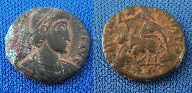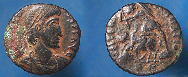 I think the images are strongly suggestive of Trier. The exergue definitely looks to begin TR, and the positioning is right for the P to be off-flan (in fact, it even looks a bit like vertical line in a P remains, for TRP). I might want to double-check, but I don't think any of the fallen horsemen-to-left issues from Rome had T's in the exergue. Only the ones spearing two enemies-to-right, right? We talked about this on a different site (I'm jjfnumismatics), but I forget to look through my bag for any Triers. Wanting to share in the pleasure of fallen horseman coins -- I won a Constans AE2 Fallen Horseman from Thessalonica today, partial silvering, with a truly lucky auction pick from G&N. What's interesting about this one, I think, is the globe in hand. Didn't realize the Thessalonica issues had that: Ah, you've got one of these, lol! And a Gallus Trier... Okay, thought I remembered one but nothing jumps out as Trier -- so far... You're right, these are hard to find for sale. ROMA Numismatics had a least a couple reasonably priced... Don't see anything now