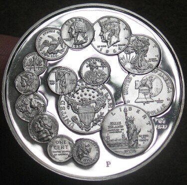 How about coins/medals with images of other coins on them?? That would be a pretty cool set to have. I'm not sure how many are out there and it could be a U.S. and World coin set. Here's an example of what I'm talking about: That's the silver medal that came in the 1993 Philadelphia Set put out by the U.S. Mint. I have seen some Medallic Art Co. medals that have images of coins on them too... one medal had an example of each U.S. dollar from the flowing hair type to the Ike Dollars on it. I've also seen some ANA medals that have images of coins on them too I think. I'm sure other coins/medals with coins on them are out there too.