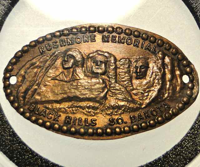 I have this one of Mt. Rushmore with only three heads on it stamped on a 1920 Lincoln cent. Probably made right at the monument back in the day.