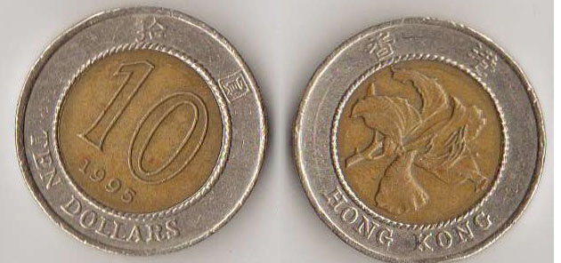 Like some others on this forum, I have made a habit of checking the automatic change counter's return tray whenever I visit the grocery store just to see if anything was left behind. A few times I've found a couple coins but nothing big. Today was my most productive day yet. I found 39 coins, all but two of them pennies. Among them were a 2009 D and 2011 D penny that I needed for my Whitman album, as well as a 2011 D dime for the Whitman album, which were great. But the highlight is the coin I have attached a picture of. Hong Kong 10 dollars from 1995. This coin is the thickness of two U.S. nickels and doesn't look anything like any of our circulating money. God only knows how it ended up in someone's pocket change.