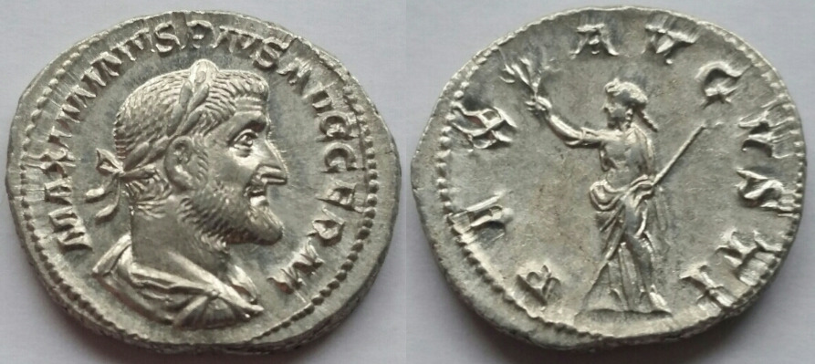 My collection is too narrow to really make such an illustration (if I have duplicates, they are usually quite spread throughout the emperor's life). I can make the famous illustration of Maximinus I, the Emperor that the Mint Didn't Know What He Looked Like 1st - Modified Severus Alexander 2nd - His chin is big? Surely it can't be that big? Bigger? You gotta be joking, right? 3rd - We got the official bust in, finally. Oh jeez, he really does look like that?! @Orfew, how about your Galba denarii? IIRC, you had a pretty impressive variety of portrait styles