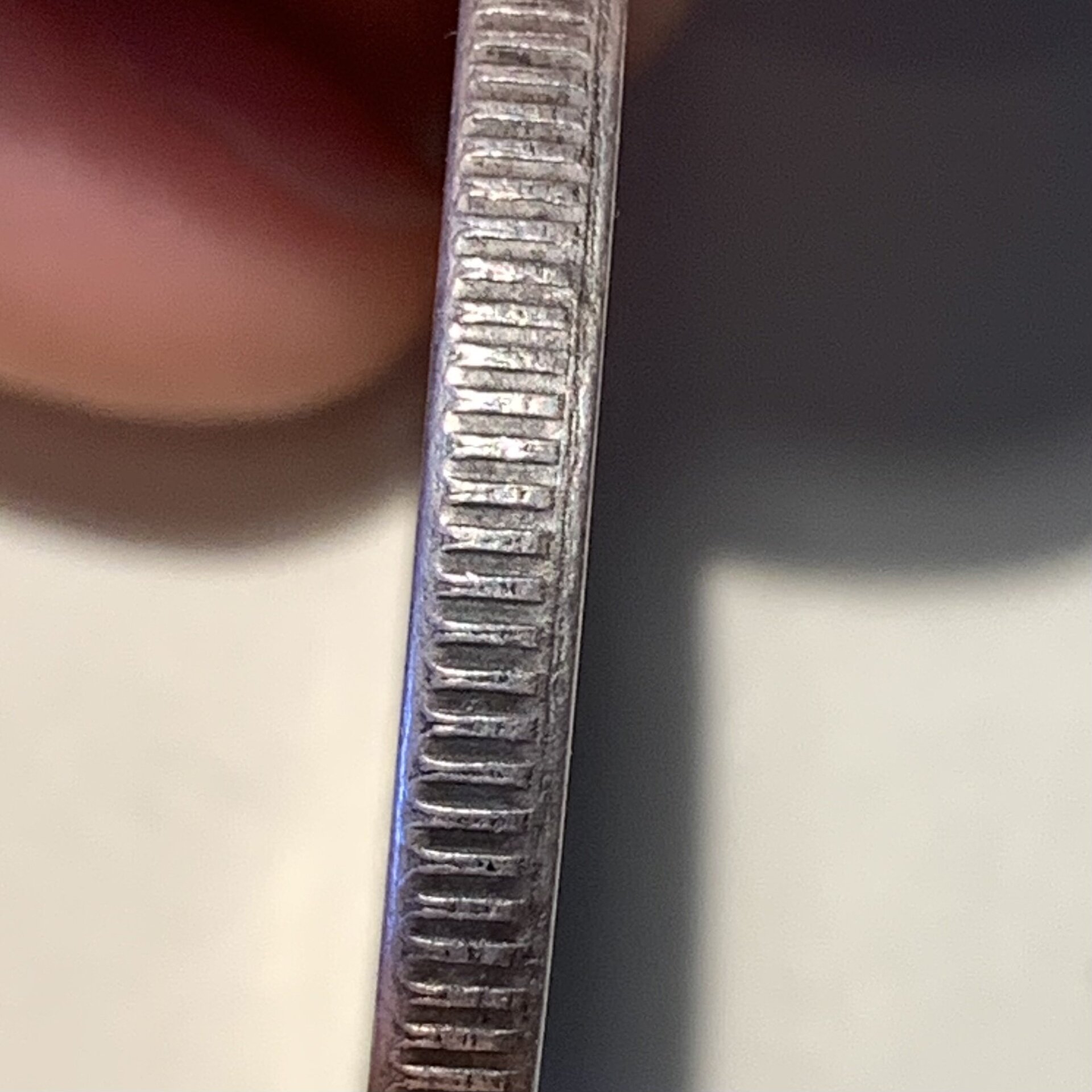 Hey everyone, need some input here. I recently picked up this 1899 peso. Weight is almost bang on and coin is nonmagnetic, but the ping test is odd—right pitch, but the ping sounds hollow (?) and doesn’t ring long enough. However, it also seems a bit thick at 3mm, and this edge is the most concerning part—undoubtedly the reason why the coin is so thick. The grooves seem thicker than a 1909 peso I have, and also seem to be wavy—when looking at the coin horizontally, they appear to undulate.