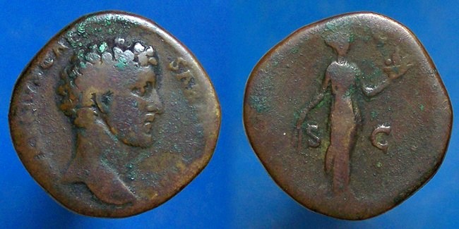 thought I'd share a couple new additions I got in the mail today. Its just a coincidence that they both have Fides on the rev. Marcus Aurelius, 7 March 161- 17 March 180 A.D. Orichalcum sestertius, RIC III Pius 1270, Cohen 614, aF, 23.910g, 31.5mm, 0o, Rome mint, 147 - 148 A.D.; obverse AVRELIVS CAESAR AVG PII F, bare head right; reverse TR POT II COS II S C, Fides standing right, ears of grain in right, basket of fruit in raised left Philip I, the Arab, First Half of 244 - End of September 249 A.D. Silver antoninianus, SRCV III 8932, RIC IV 32b, RSC IV 55, VF, 3.820g, 23.3mm, 45o, Rome mint, 244 - 245 A.D.; obverse IMP M IVL PHILIPPVS AVG, radiate, draped and cuirassed bust right, seen from behind; reverse FIDES MILIT, Fides standing half left, standard in each hand; well centered