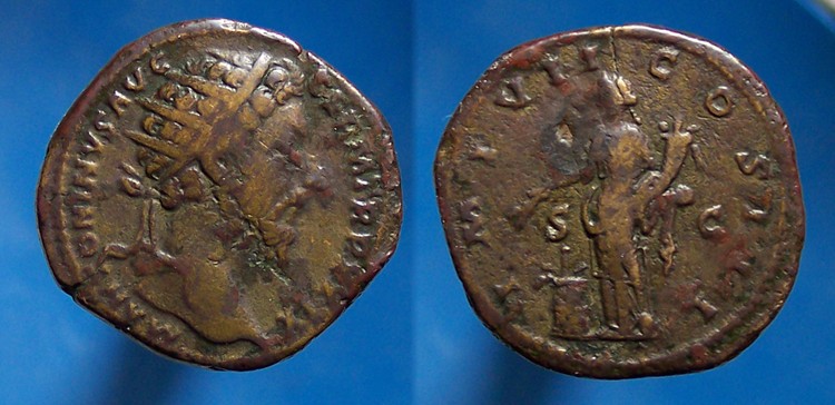 Be waiting a while to get these, late b-day presents . the pics are not the best, was too excited to take my time Antoninus Pius AE Sestertius. 157-158 AD. ANTONINVS AVG PIVS P P IMP II, laureate head right / TR POT XXI COS IIII S-C Roma seated left on cuirass, foot on helmet, holding Victory and parazonium; shield behind. RIC III 979a; Banti 490. --- Severus Alexander AE Sestertius. 235 AD. IMP ALEXANDER PIVS AVG, laureate, draped and cuirassed bust right / P M TR P XIIII COS III PP S C, Sol walking left, holding whip and raising right hand, cloak billowing out behind. RIC IV 541; BMCRE 964; Cohen 457 Looks alot better in hand --- Marcus Aurelius AE Dupondius. 175 AD. M ANTONINVS AVG GERM TR P XXIX, radiate head right, seen from behind / IMP VII COS III S-C, Annona standing left, holding grain ears over modius containing two grain ears & poppy, & cornucopiae. Cohen 334v. RIC 1134v The pic is pretty acurate on this one.