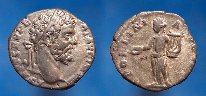 Heres the the one I got in trade Septimus Severus Denarius. L SEPT SEV PERT AVG IMP IIII, laureate head right / APOLLINI AVGVSTO, Apollo standing left with patera & lyre. Rome mint RIC 40, RSC 42, BMC 78 (hope I got that right )