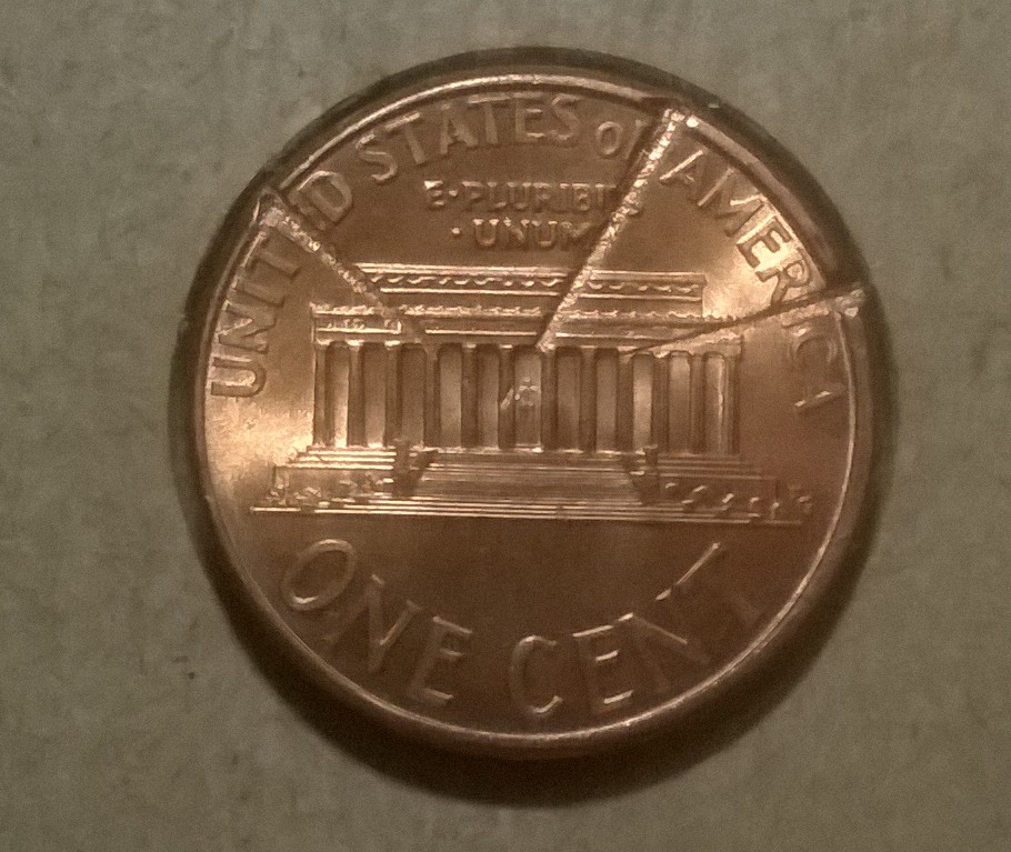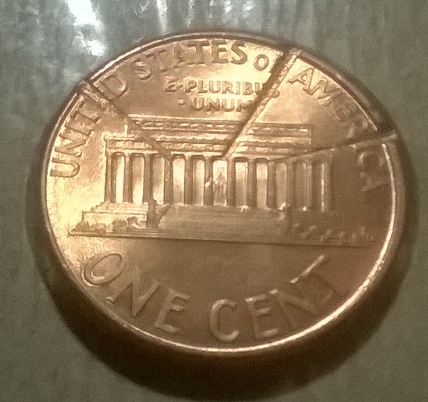 This is definitely PMD but I'm having a fun time envisioning what did it. The obverse marks start wide at the edge and get thinner as they move inward. That's consistent with a tool like tin snips or wire cutters or anything else that works like scissors. But then the reverse marks don't show that. They start wide and stay wide (for the most part). And that wouldn't be anything like a scissor type tool. Even if the bottom arm of the scissor tool was flat, I still don't think enough force could be applied for the reverse marks to be that pronounced all the way to the center of the coin. I'm thinking a vice. Cool to look at though.