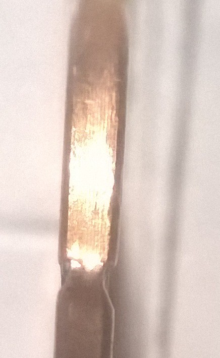 Post Mint Damage.. I agree with the others. Wire cutter, snips, some type of scissor made those 3 gouges. I don't see anything else