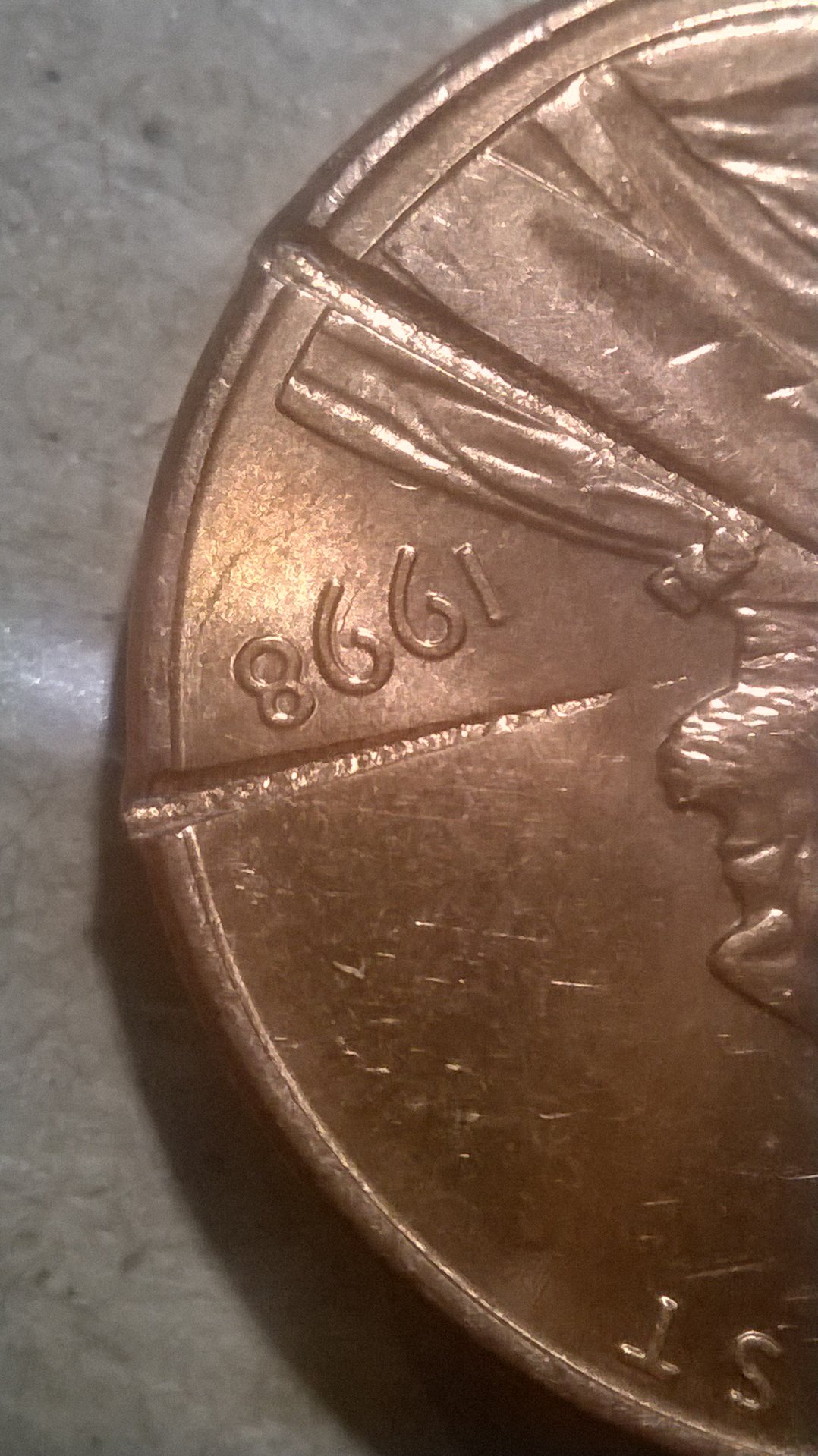 It is not fully snipped and that is why you don't see the inner part of the cent. It was just pressed hard enough to cause the gouge.. sorry buddy not an error.