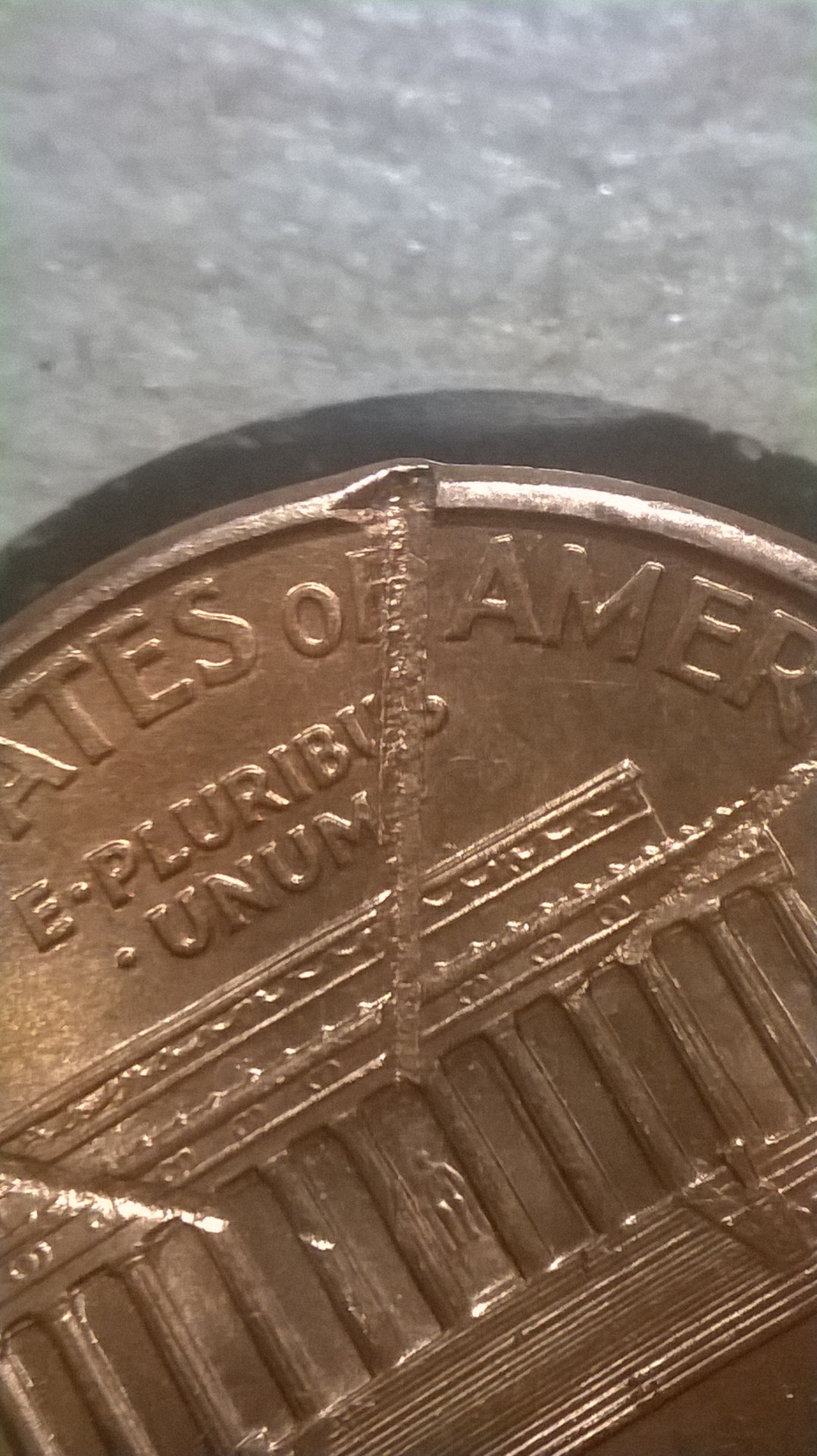 The 3 long cracks do not seem like PMD the copper coating is filled in with it and you can still see the letters in the cracks also seems like multiple clashes and possibly doubling I can not find any info about anything like this so I need your help. Hope the photos are alot better. I cant tell you were to look because there is stuff everywhere.