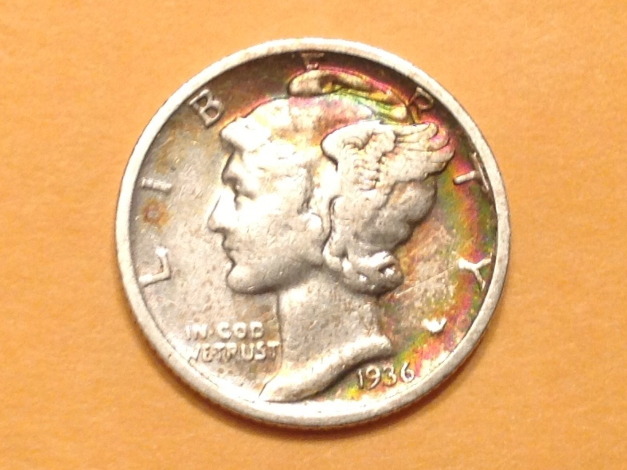 Not even gonna post dates anymore lol. Anyways got a toned penny in a box of copper and a this mercury dime without gorgeous rainbow toning for 3 bucks!
