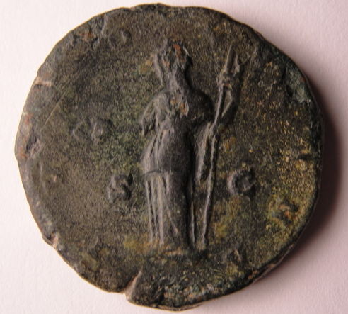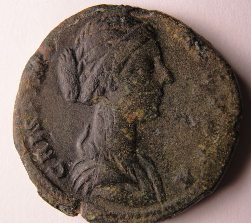 Bruttia Crispina..164- 191..AD. Ae Dupondius ... Wife of Commodus.. Ob. Crispina bust right.. Rev. Juno standing left, holding patera and Sceptre. S-C.. dark green patina 28mm x 10.82g..