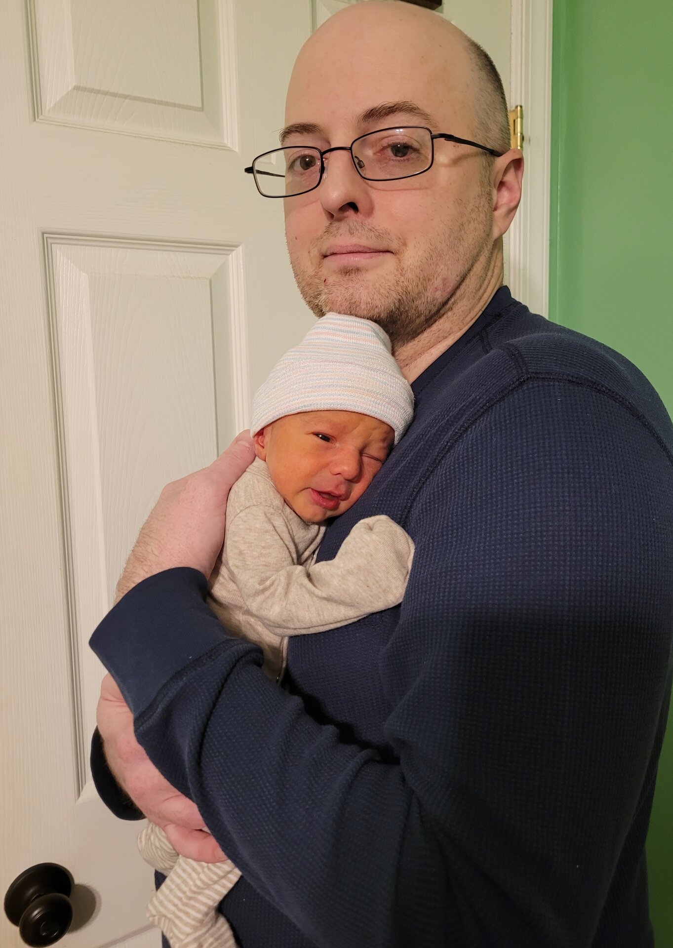 F.F. Congrats on adding this handsome lad to the family ! He looks like a serious numismatist already . When his eyesight & strength improve give him a test by putting a Greek, Roman, Byzantine, & Celtic coin in front of him & see which coin he wants to put in his mouth first, that will be his collecting specialty .