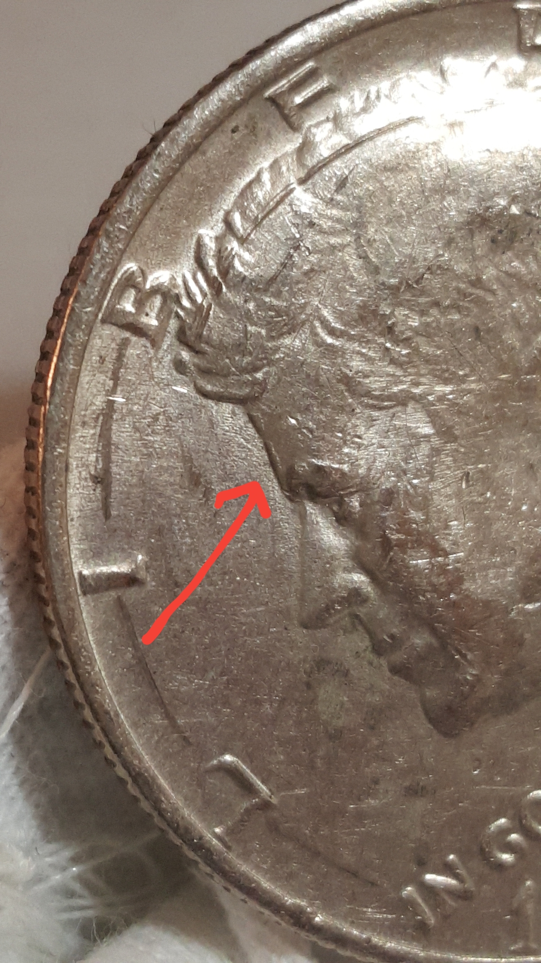 First, let me say that I am not an expert on anything. Paddy is much, much more knowledgeable about errors such as these than I could ever be. Maybe Paddy saw it and considers it damage. Maybe Paddy didn't see it. Only Paddy could say. Now in my very inexperienced opinion, I think those two could be die chips. Now, to think about die chips. Die chips are very common. You'll find them on a lot of coins, a lot of times. Just keep looking and you'll keep finding them. Die chips are so common that, for the most part, they carry NO INCREASE in value with them. For a die chip to have any real value, it would need to be BIG and would need to like cover up part of the design or something else VERY noticeable. Nobody really wants something that you have to search for with a magnifying glass just to know it's there. So, here's your bottom lines : 1)Those two may or may not be die chips. I think they are. 2) Even if they are die chips, they are so small and inconsequential, that they have no value....except to you. My advice : Keep the coin, put it in your oddities box and do "Show and Tell" with your friends. You already own the coin. It will only cost you 50 cents to put it away and use it to amaze and amuse your friends. Keep looking for die chips and cuds. Use the info Paddy gave you and my advice about die chip size and value, to keep searching, keep looking, keep collecting, and keep posting. Sooner or later, you will find something nicer and then replace this coin with a better one. Remember, whatever you find, we will be here to help you understand it.