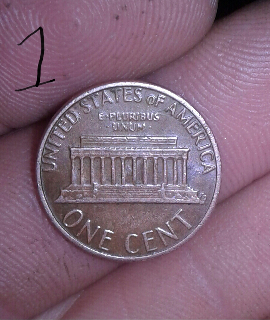 First 2 1981 penny's I've been able to find(roommate found the one labeled 2), and looked up wheatback penny's for a friend. Seeing the term error amd remembering the marks that look like label penny 1 looks to be struck twice, I pulled them. Just a curiosity, number two to me looks as if there is a skull in the steps of the Memorial. My plan, with them being the year of my birth, along with penny's the years of my siblings births, is to run them thru one of them machines that flatten them with imprinted design or saying. Before I do that, my luck doesn't account for find it a penny worth more than a penny, but want to make sure it's not work 75 to 10,000$.