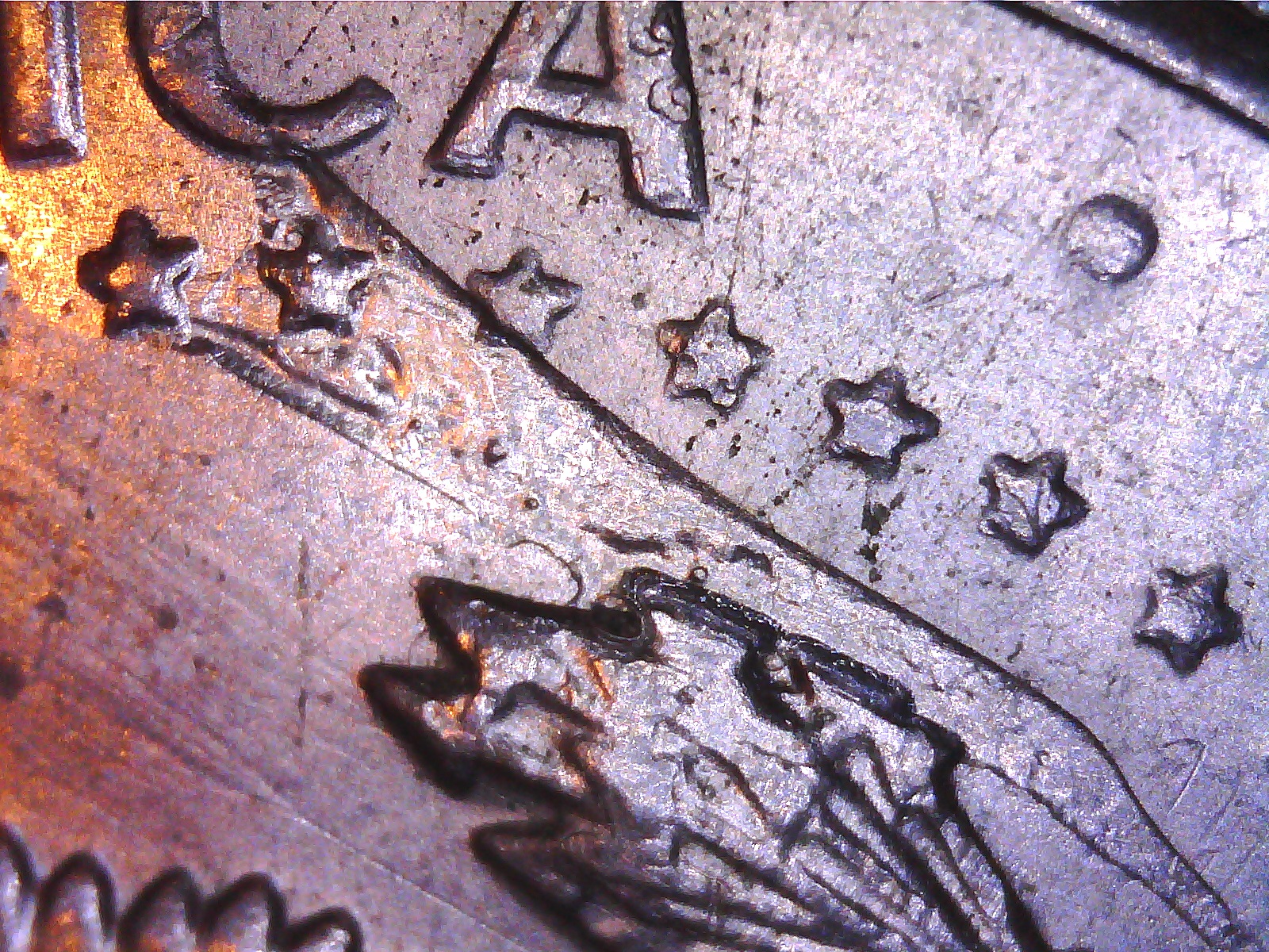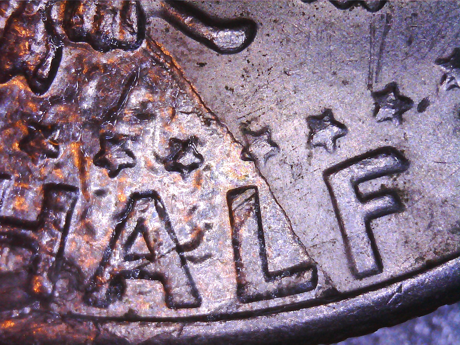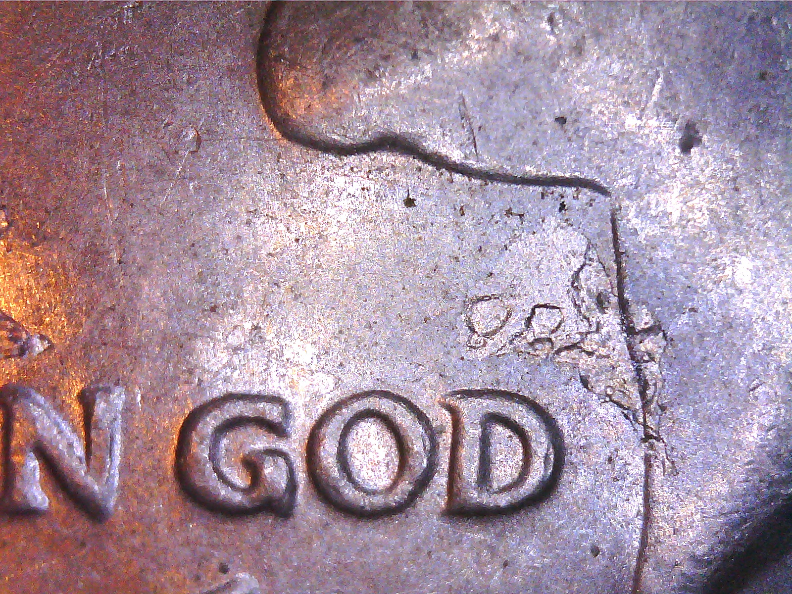 There is a prominent radial die break, a true radial since it goes through the center of the coin, and other die cracks. Jim