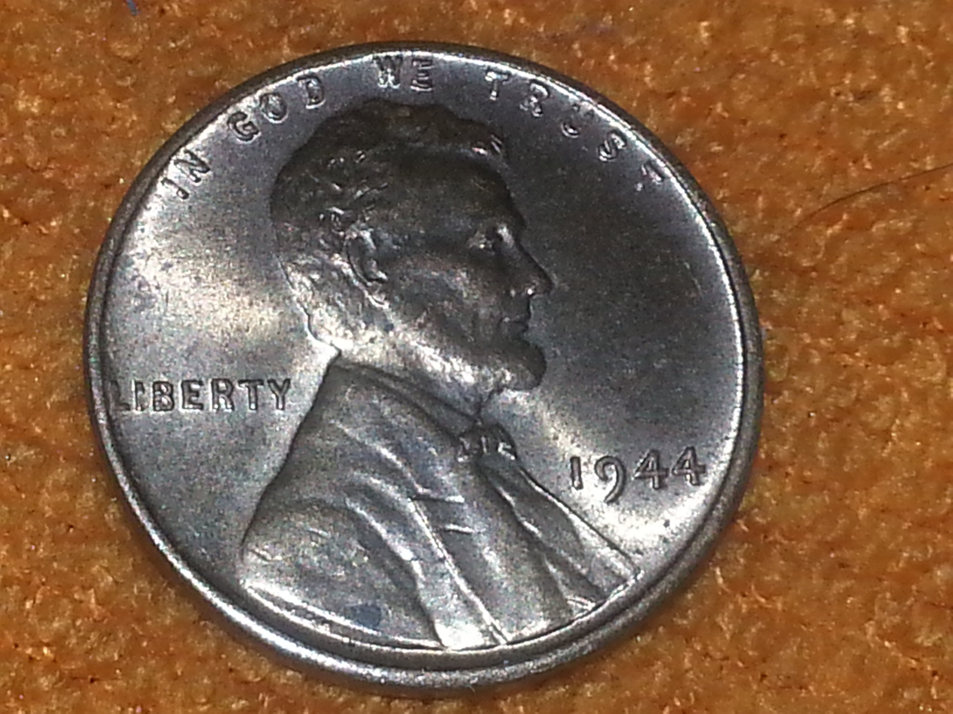 The 1944 is either AU-58 or MS-64. It's just a bit hard to see the high points with the coin being on an angle to know if it is uncirculated or not.