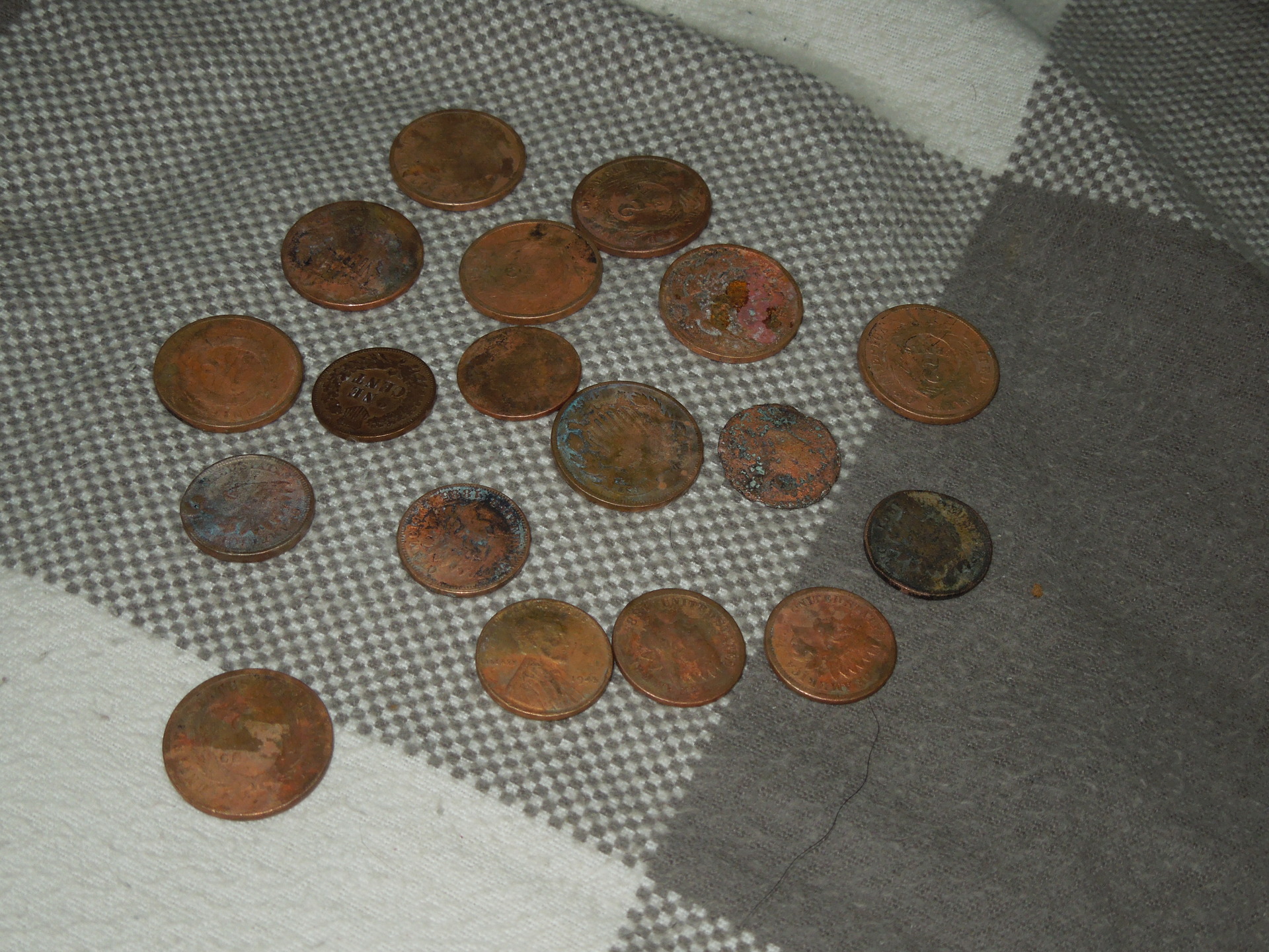 I bought a huge bag of damaged world and us coins for $10. There are about 10 large cents, 10 2 cent pieces, and 5 Indian heads.