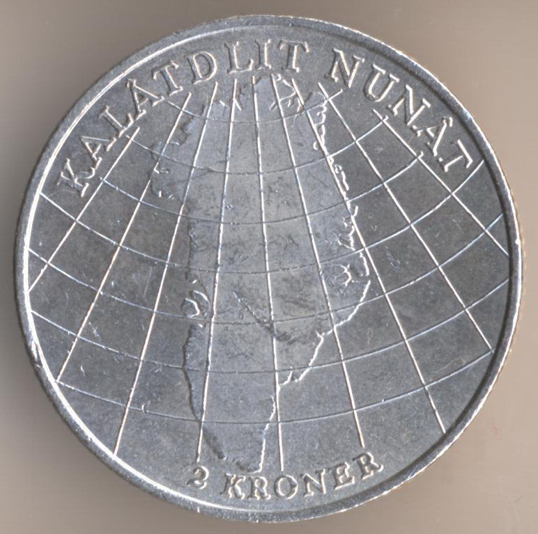 2 kroner 1953, silver .800, weight - 15 g., mintage - 151710 pcs. "Map of Greenland". King Frederik IX. The single release only.
