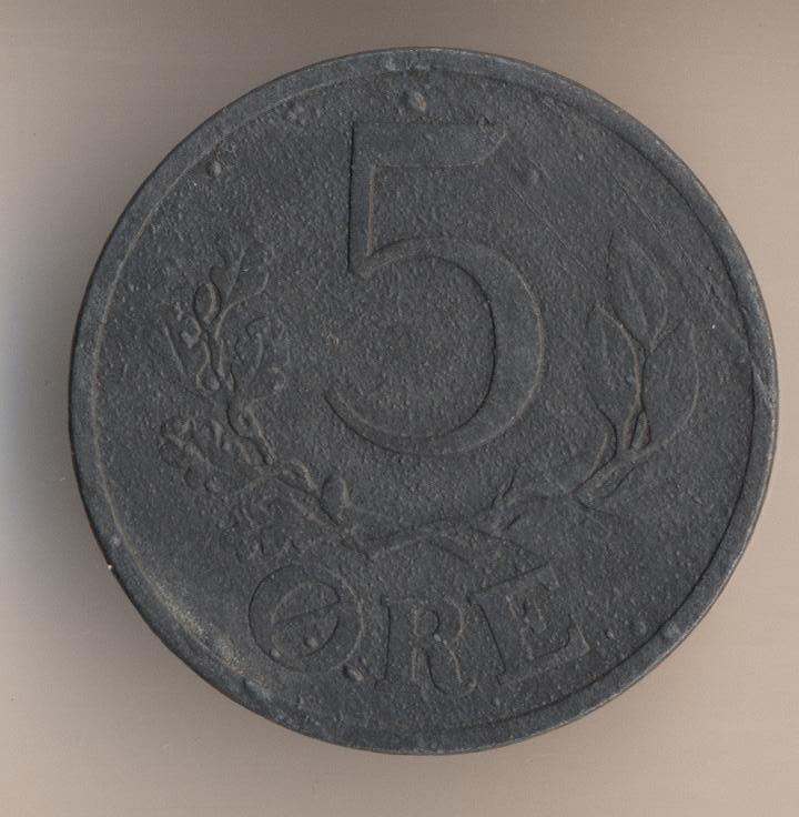 5 ore 1943, zinc. Period of the Fascist occupation. Very low quality of minting. You can see many of deffects, such as the uneven surface.
