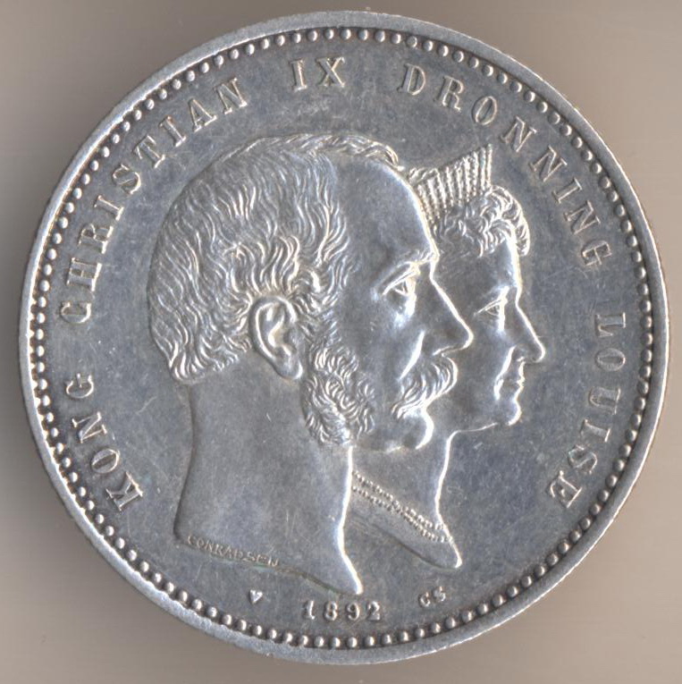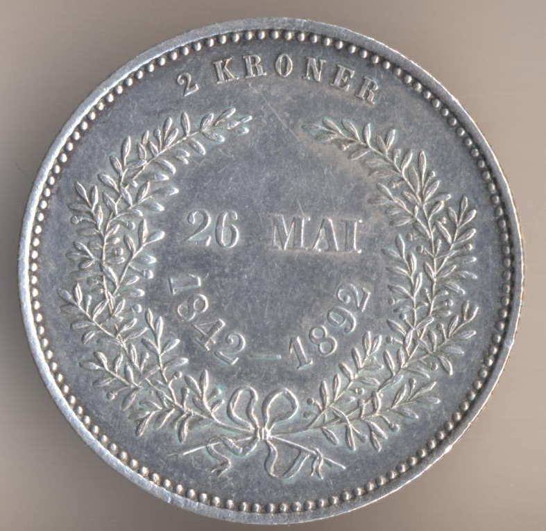2 kroner 1892, silver .800, weight - 15 g., mintage - 101000 pcs. "Golden Wedding". The single release only.