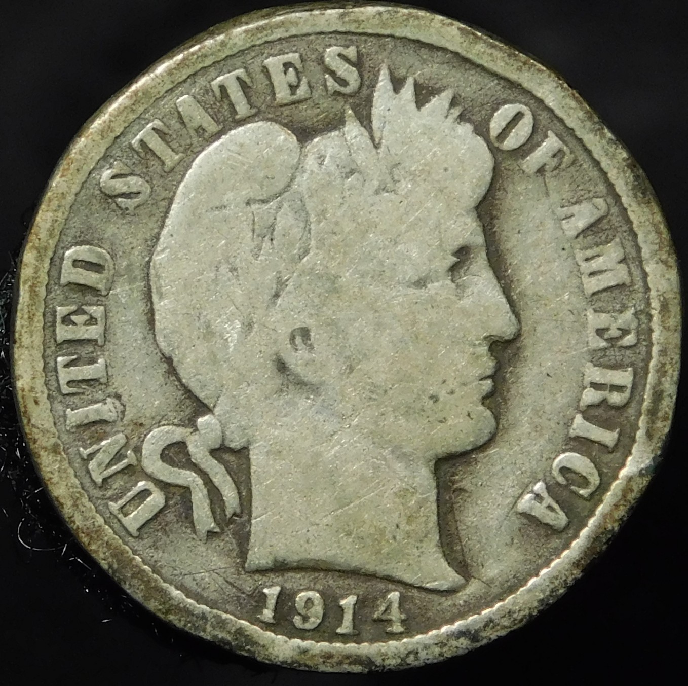 This 1908 D Barber Quarter has some deep scratches on the reverse. I deep one on the obverse as well. Likely taking it down from a $10 coin to melt...