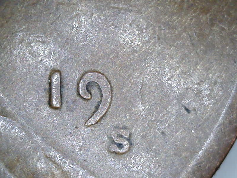 I'm going to say 1919S - Enlarging the photo I can see the 1 and tail of the 9, which matches the first 9. Most likely grease filled die.