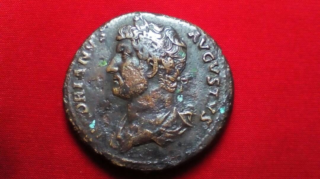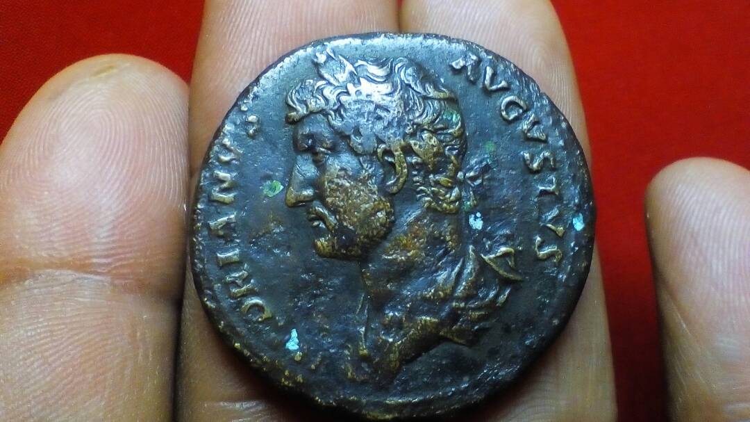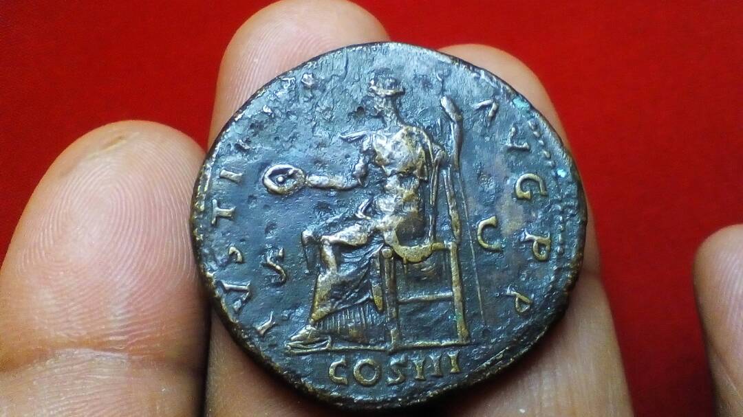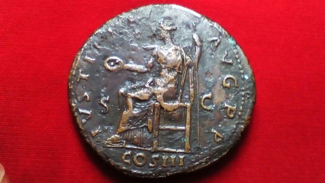 @hmamla -- that is supposed to be a sestertius of Hadrian. I cannot say whether it is real or a fake from a photo. It also looks like it has bronze disease. I wouldn't buy it if I were you. Rome mint, struck A.D. 131. HADRIANVS AVGVSTVS, bare-headed draped bust left / IVSTITIA AVG P P / COS III S - C, Justitia seated left holding patera and scepter. RIC 711a; C 901; Sear 3605.