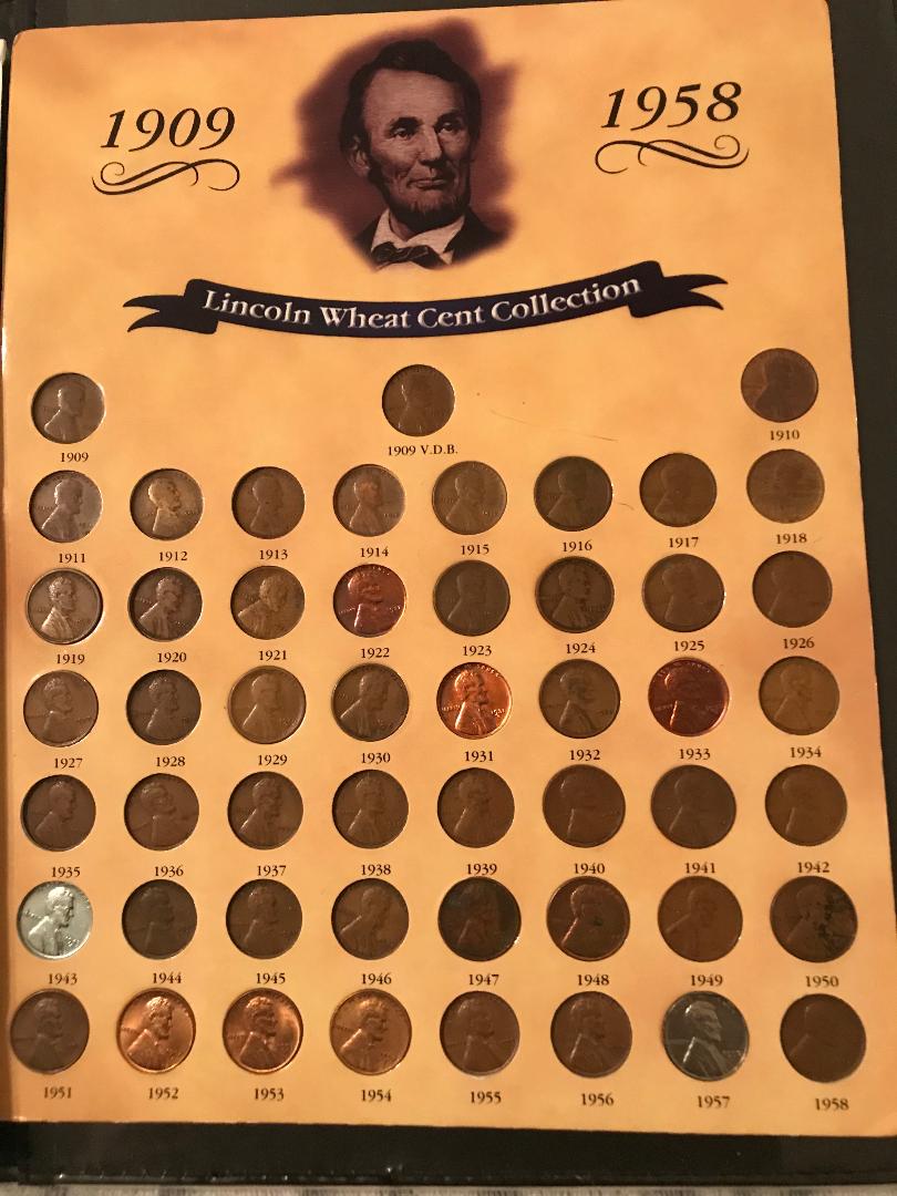 American Great Lincoln Collection Penny 1909 = G-4 (?) Penny 1910 = G-4 (?) Penny 1911 = G-4 (?) Penny 1912 = G-4 (?) Penny 1913 = G-4 (?) Penny 1914 = G-4 (?) Penny 1915D = G-4 (?) Penny 1916 = G-4 (?) Penny 1917 = G-4 (?) Penny 1918 = G-4 (?) Penny 1919 = G-4 (?) Penny 1920 = G-4 (?) Penny 1921 = G-4 (?) N0 PLACE HODER FOR 1922(?)*** Penny 1923 = G-4 (?) Penny 1924 = G-4 (?) Penny 1925 – Dbl 1&9 = G-4 (?) Penny 1926 = G-4 (?) Penny 1927 = G-4 (?) Penny 1928 = G-4 (?) Penny 1929 -? (9’s) = G-4 (?) Penny 1930 = G-4 (?) Penny 1931 = G-4 (?) Penny 1932 = G-4 (?) Penny 1933 -? (9-3) = G-4 (?) Penny 1934 = G-4 (?) Penny 1935 – Dbl Die Obverse = G-4 (?) Penny 1936 = G-4 (?) Penny 1937 = G-4 (?) Penny 1938 -Dbl Die Obverse = VG-8(?) Penny 1939 – 9 over 4? = G-4 (?) Penny 1940 = G-4 (?) Penny 1941 = G-4 (?) Penny 1942= G-4 (?) Penny 1943 Steel = AU-50 (?) Penny 1944 = G-4 (?) Penny 1945 = VG-8 (?) Penny 1946 = G-4 (?) Penny 1947 = G-4 (?) Penny 1948S -? (S) = F-12 (?) Penny 1949 = G-4 (?) Penny 1950 = VF-20 (?) Penny 1951D = VF-20 (?) Penny 1952 = VG-8 (?) Penny 1953S = VF-20 (?) Penny 1954S – Closed 9 = VF-20 (?) Penny 1955D = VF-20 (?) Penny 1956D = VF-20 (?) Penny 1957D -? (5) = VF-20 (?) Penny 1958D – Double (D) in GOD = VF-20 (?) Penny 1959D = MS-63RB (?) Penny 1960 -? (R) = MS-63RB (?) Penny 1961D = MS-60RB (?) Penny 1962 - Dbl Die Obverse = MS-60RB (?) Penny 1963D = MS-60RB (?) Penny 1964 = AU-50 (?) Penny 1965 = AU-50 (?) Penny 1966 -? (L) = AU-50 (?) Penny 1967 = AU-50 (?) Penny 1968S = EF-40 (?) Penny 1968S = EF-40 (?) Penny 1969S – Doubled Die Obverse = MS-60 (?) Penny 1970S – Lg Dt (Low 7) = MS-60 (?) Penny 1971S – DblDie Obv = MS-60 (?) Penny 1972D = MS-60 (?) Penny 1973 = MS-60 (?) Penny 1974D = EF-40 (?) Penny 1975D = EF-40 (?) Penny 1976 = EF-40 (?) Penny 1977 = VF-20 (?) Penny 1978D = VF-20 (?) Penny 1979 = AU-50 (?) Penny 1980D = F-12 (?) Penny 1981D = F-12 (?) Penny 1982D -Large Date = F-12 (?) Penny 1983 = VG-8 (?) Penny 1984 = EF-40 (?) Penny 1985 = F-12 (?) Penny 1986D = F-12 (?) Penny 1987D – Small 8 = F-12 (?) Penny 1988 = F-12 (?) Penny 1989D – DblDie Obverse = F-12 (?) Penny 1990 = AU-50 (?) Penny 1991 = AU-50 (?) Penny 1992 = VF-20 (?) Penny 1993D = MS-60 (?) Penny 1994D = AU-50 (?) Penny 1995 = AU-50 (?) Penny 1996 = AU-50 (?) Penny 1997D = AU-50 (?) Penny 1998D = AU-50 (?) Penny 1999D = AU-50 (?) Penny 2000 – DblDie Obverse = MS-60 (?) Penny 2001D = AU-50 (?) Penny 2002 = AU-50 (?) Penny 2003D = AU-50 (?) Penny 2004D = AU-50 (?) Penny 2005D = MS-60 (?) Penny 2006D = MS-60 (?) Penny 2007 = AU-50 (?) Penny 2008D = EF-40 (?) Penny 2009 = AU-50 (?) Penny 2009 -Formative Years Reverse = AU-50 (?) Penny 2009 - Professional Life Reverse = MS-60 (?) Penny 2009 - Presidency Reverse = AU-50 (?) Penny 2010D = AU-50 (?) Penny 2011D = AU-50 (?) Penny 2012 = AU-50 (?) Penny 2013D = AU-50 (?) Penny 2014D = AU-50 (?) Penny 2015D = AU-50 (?) Penny 2016D = AU-50 (?) Penny 2017D = AU-50 (?) Penny 2018D = AU-50 (?)