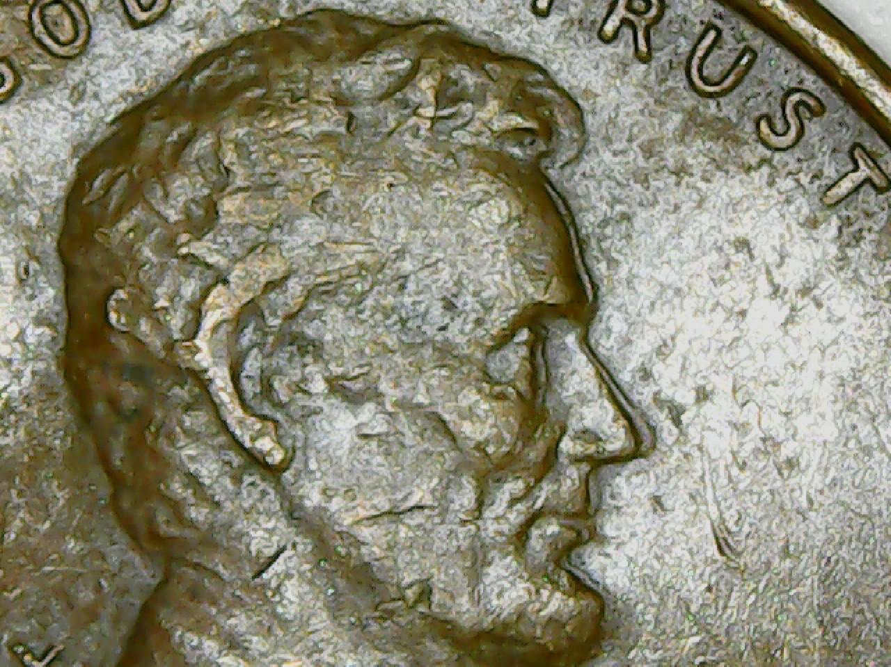 LIBERTY looks like it took a hit. Circulation wear and tear.
