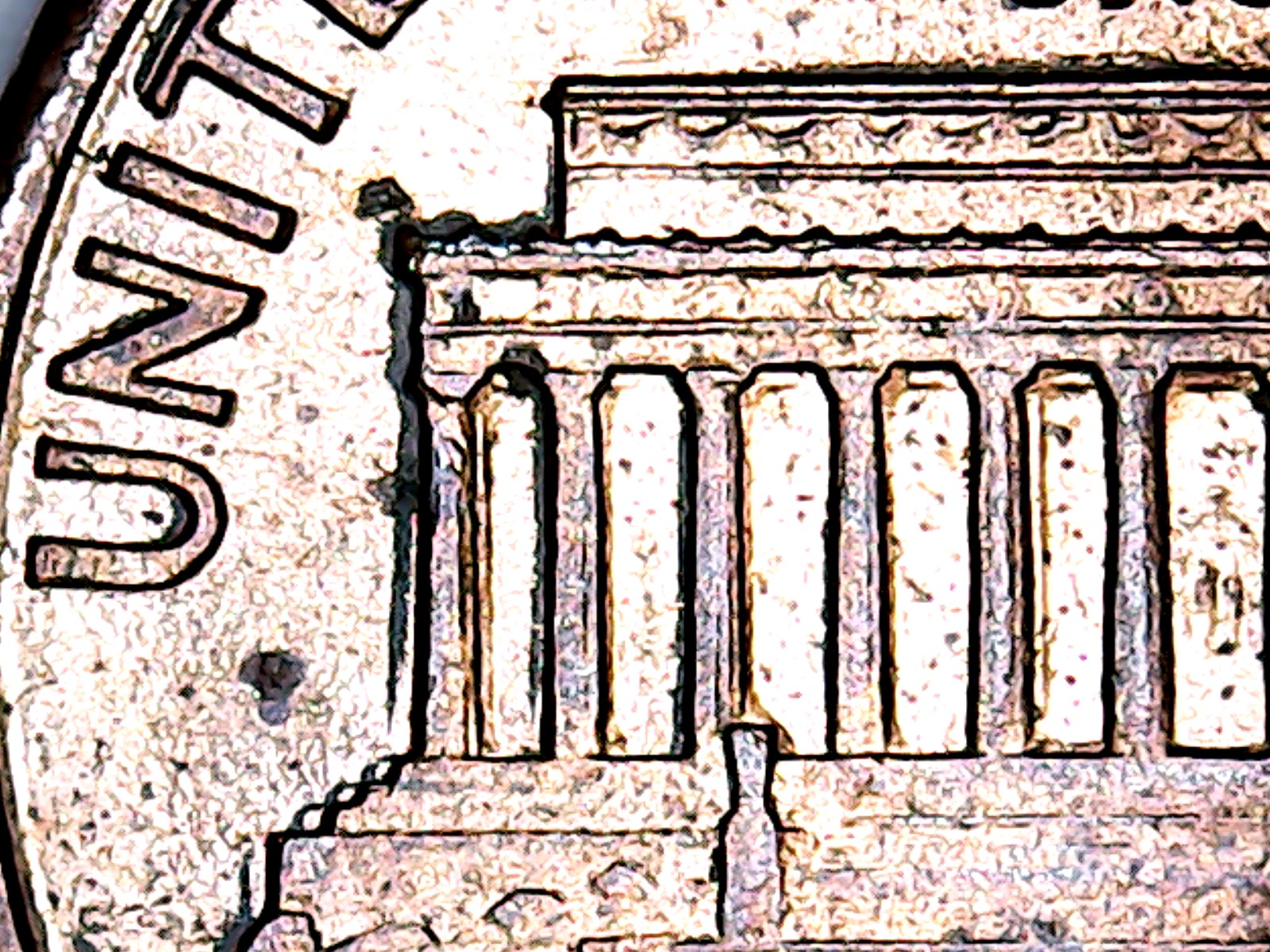 I'm going to assume that this is a 1991 debris fill die. Since part of the one is missing. And if you look closely you'll notice some very interesting things.