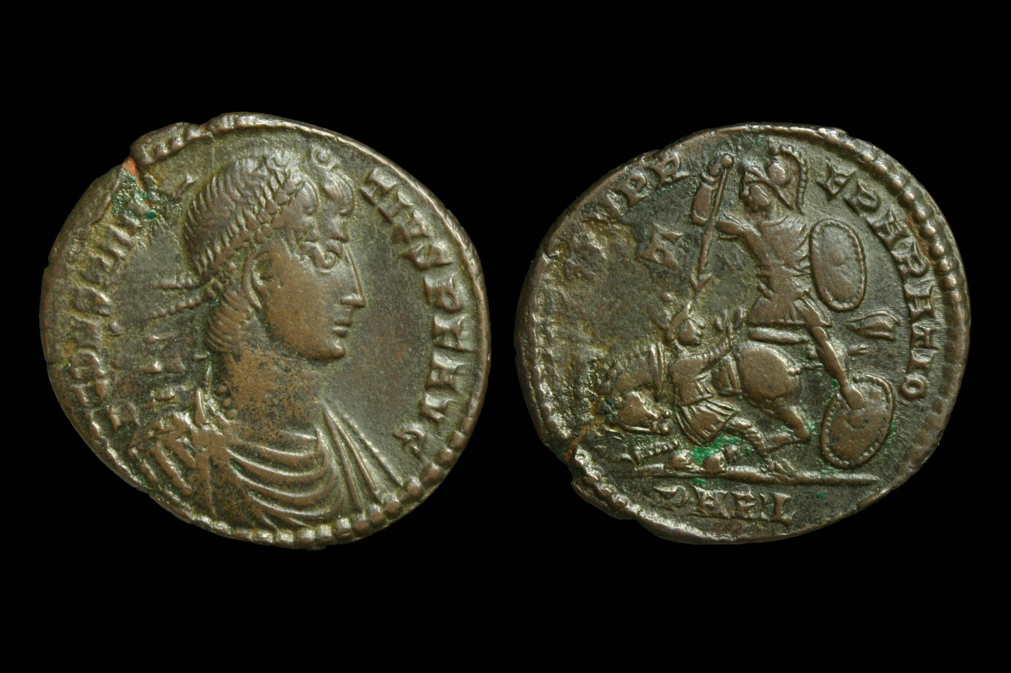 I was going to hold off a bit on new coins, but couldn't pass on this one. Constans AE Centenionalis. D N CONSTA-NS P F AVG, pearl diademed, draped & cuirassed bust right, A behind bust / FEL TEMP RE-PARATIO, soldier spearing fallen horseman who is in a Phrygian helmet, sitting on ground, arms up, A to left, dot ASIS dot in ex. RIC VIII Siscia 254, rated C2.