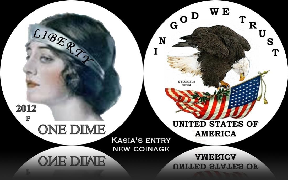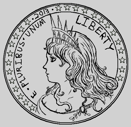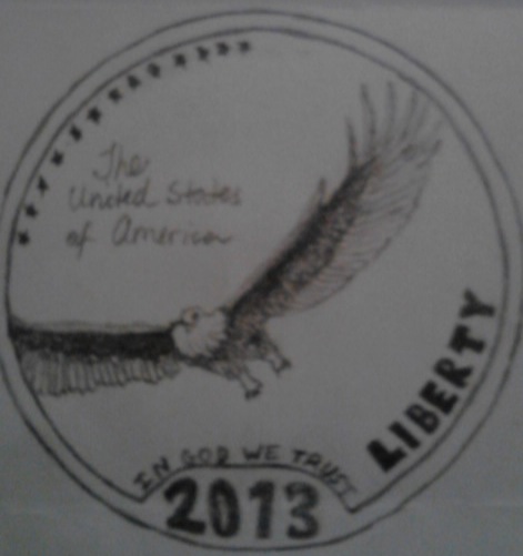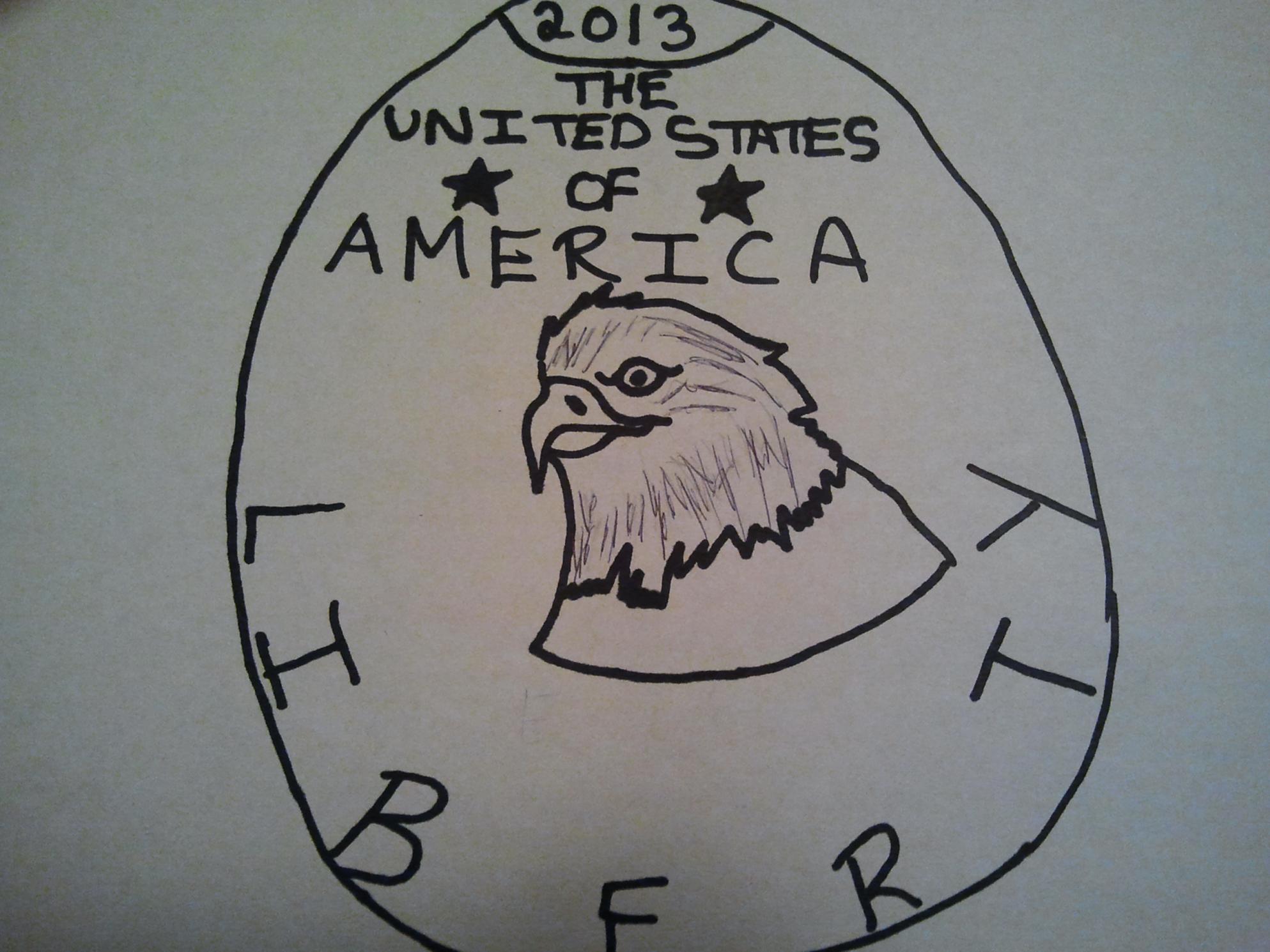 I have read many threads speaking to the fact that our modern coins are not nearly as beautiful as they once were. I can not agree more, our coins are stale and lack the artistic expression that once graced American coinage. So lets see if we can help. The contest. Design your own coin for circulation. There are no guidelines that must be followed, just have fun and see what you can come up with. Draw it on a napkin, cut out images and paste them on construction paper, use the latest high tech imaging software, whatever. Post your design on this thread and if you like, a story behind the design. There must be at least ten submissions for the contest to be valid. I will give one month for all entries (contest will end on July 5, 2012) and we will vote on the winner. The winner will receive a BU Morgan dollar. Here is my feeble attempt. I hope that mine gets blown away, but in the unlikely event that it doesn't, mine is ineligible. Good luck and get to work. :smile There is one rule. If you do not like someones design, keep it to yourself. But by all means, complement the ones that you do like.