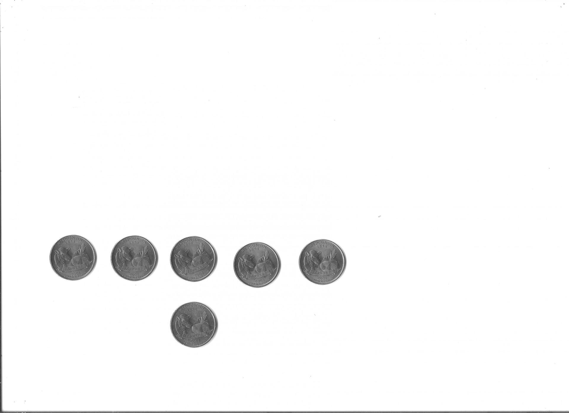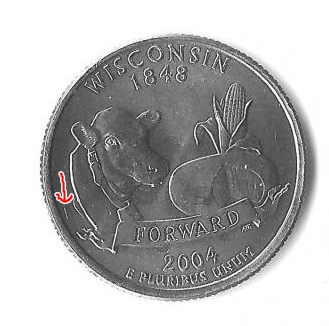 Greetings and Happy Holidays to all: I was going through coins i purchased at an estate sale and came across 5 wisconsin quarters with the same marks. I am very new to numis numista...coin collecting. I am quessing it s a die crack. Any and all help is appreciated. I should clarify what i mean. to the left of the cow just above ribbon EDIT:I am more awake now and have noticed more. After inspecting the coins against those that look like they should, i could see distortions under the "R"s in the ribbon. noticeable in a zoom of the scan. Again only on the same 5 coins.