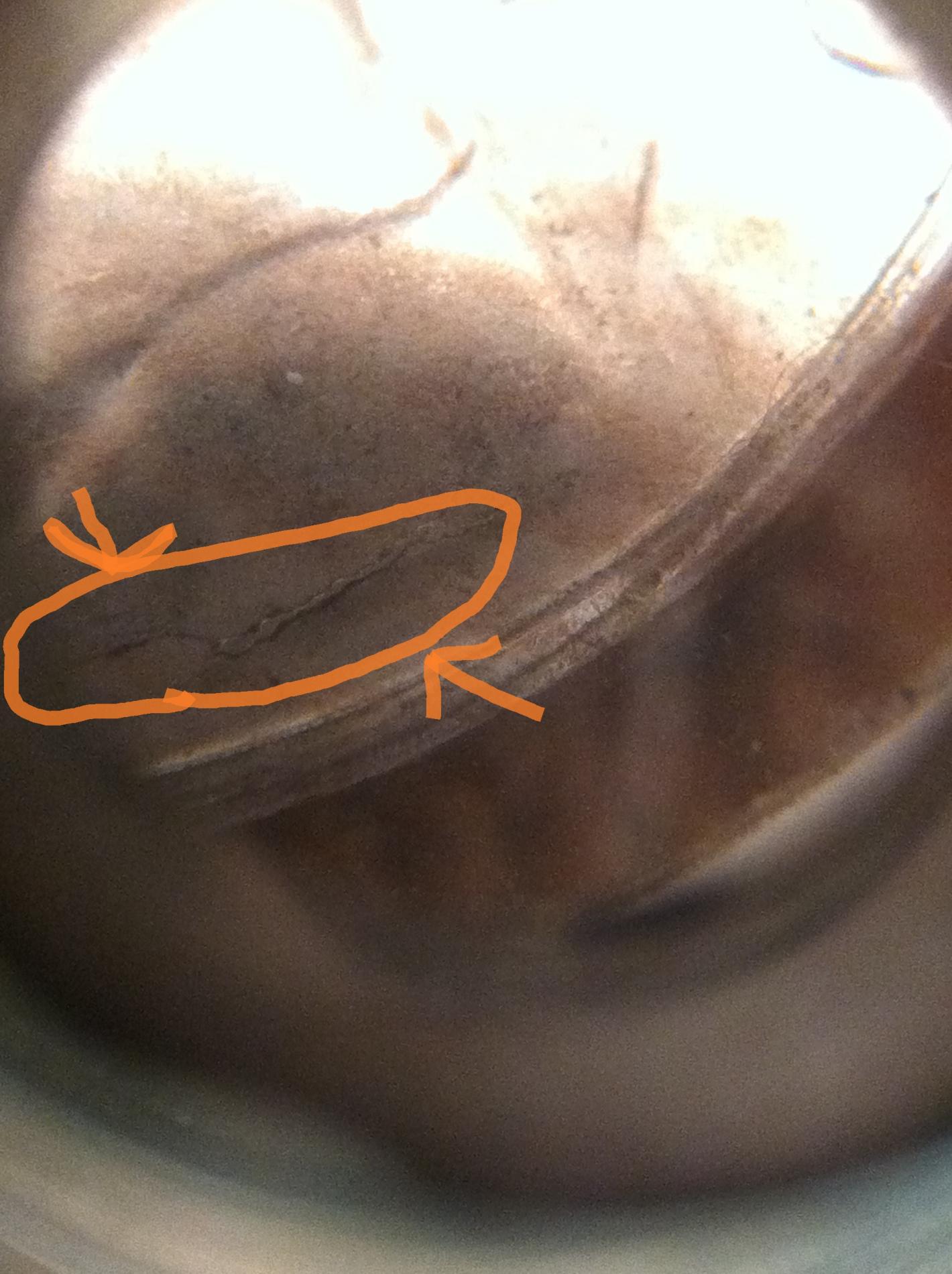 If I hover over it till the picture appears, and then click twice on that one, it really enlarges it a lot. Looks like a die crack to me.