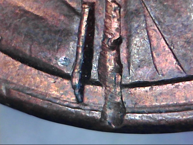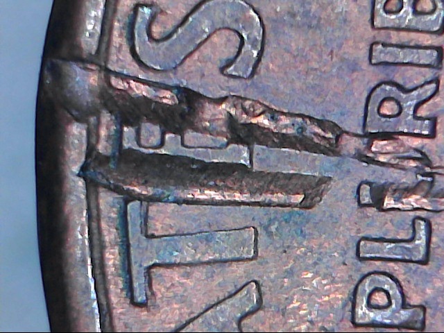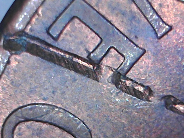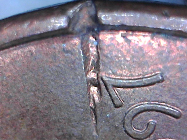 Take a closer look. Run your fingernail across them. Someone, for unknown reasons, used diagonal cutters to damage the cents. PMD. Welcome to CT BTW.
