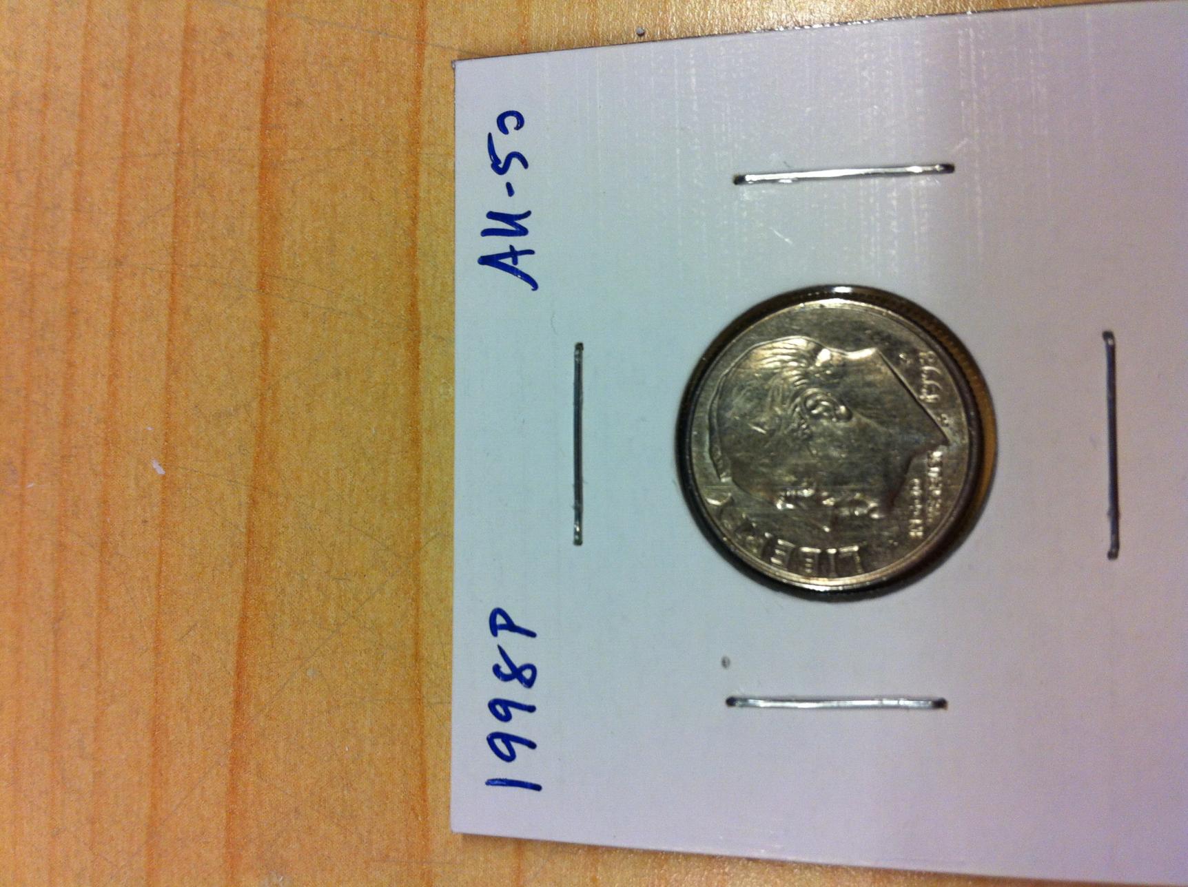 I was looking through some of my change today and I found a 1998P dime with a rotated die error! It's about 150 degrees off, meaning that the reverse is only 30 degrees from being medal orientation. (When I flip the coin vertically, the reverse is almost upside down.) The coin itself is in around EF-45 to AU-50 condition. Any idea as to the value of something like this? Thanks! And sorry about the photos. It looks like they have a rotation erro of their own!