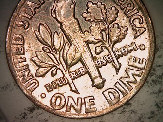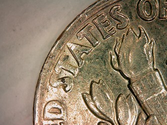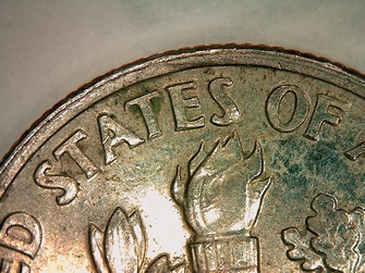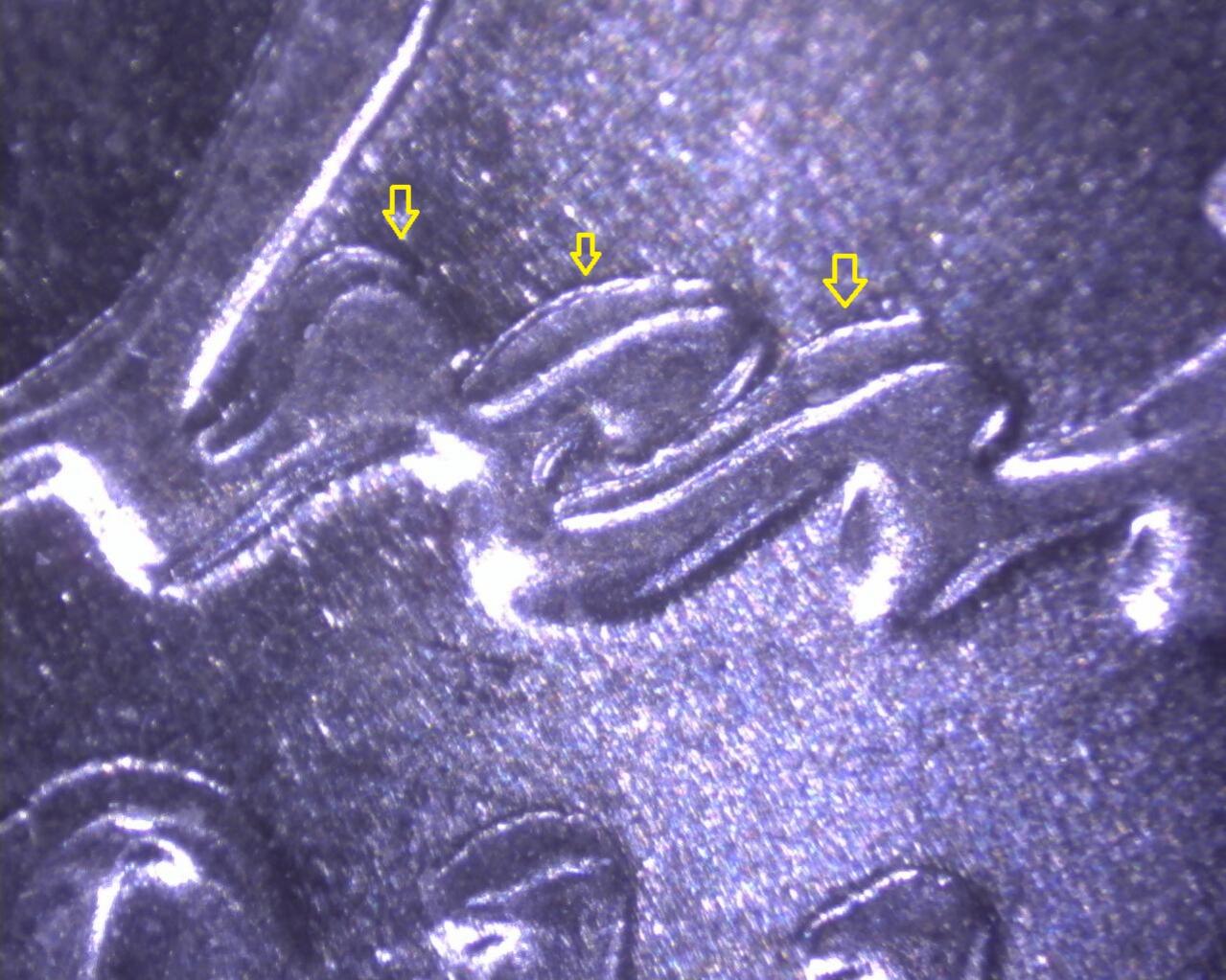 Machine doubling. Caused by vibration of the die as it releases the coin. Defined by flat, shelf like second image.